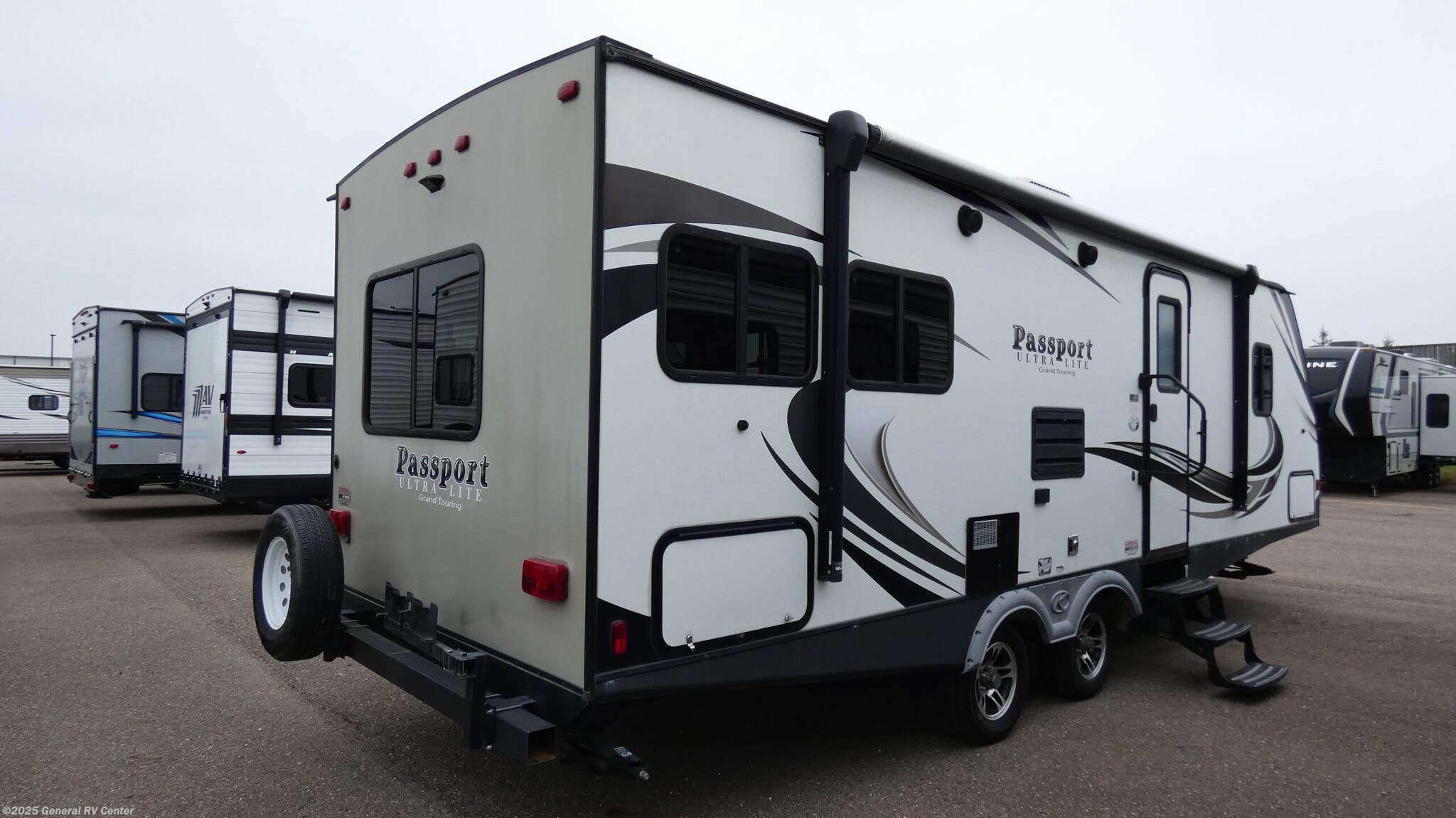 If you are a couple or family of four to five, this Passport 2520RL Grand Touring might just be the perfect travel trailer for you. If you have been thinking about how you can travel around to see new places with your own accommodations, step inside. You will find your own private bedroom on one side of the trailer, and a conveniently located full bathroom across from the main entry. The rear living area offers seating and dining, plus extra sleeping space for the kids or grandkids. You can make meals, store your perishables, and even take larger items in the pass-through storage outside. Come see what else will make your experiences in the RV world enjoyable. The Passport Grand Touring models are lightweight and towable behind many SUVs and half-ton trucks. Each model comes with Load Equalization axles that reduce sway for an easy tow, and the unit has an enclosed, sealed and heated underbelly for four seasons of traveling. Once at your destination you can walk up the triple entry steps and grab onto the XL folding entry assist handle for support. You will find several residential style features such as durable Armstrong linoleum, furniture with high grade fabric, and raised panel hardwood cabinet doors. The exterior shower is very useful to get cleaned up before entering the RV, washing your pets, or even cleaning a few dishes outside. Choose your favorite Passport Grand Touring model today, and start making memories tomorrow!