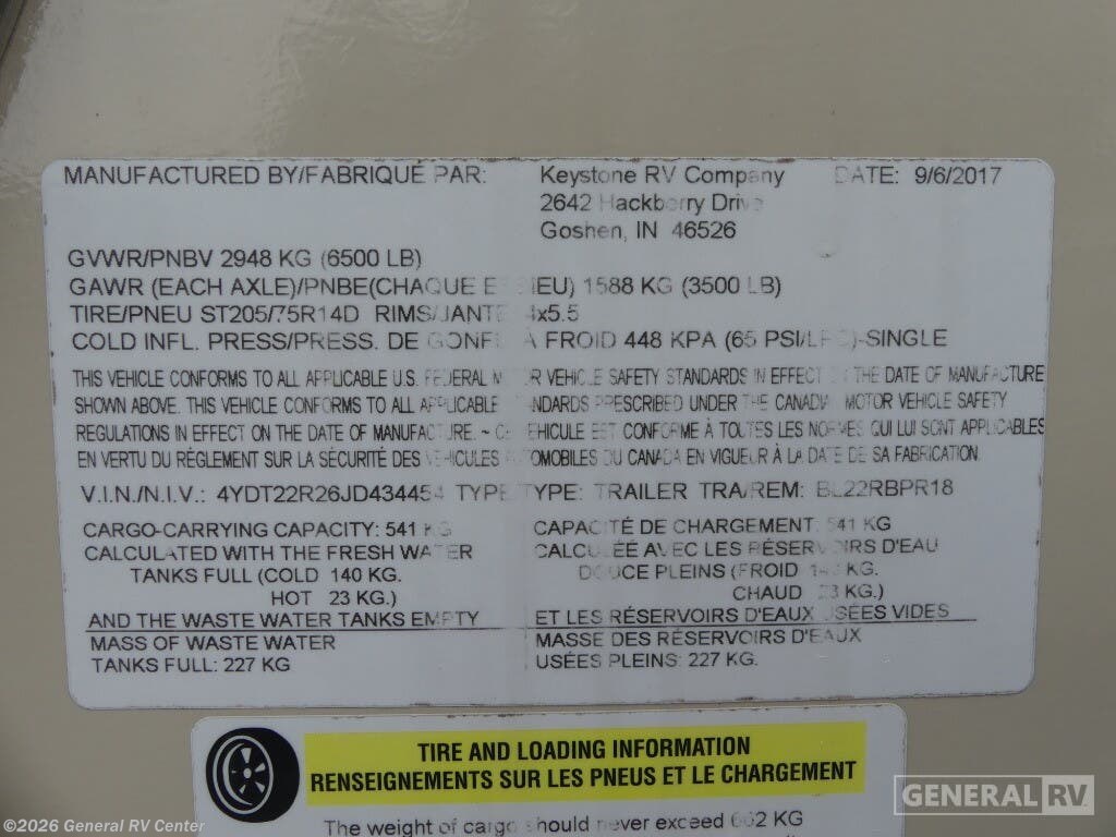 Request More Info on this 2018 Keystone Premier 22RBPR-1S Offered for sale by General RV Center