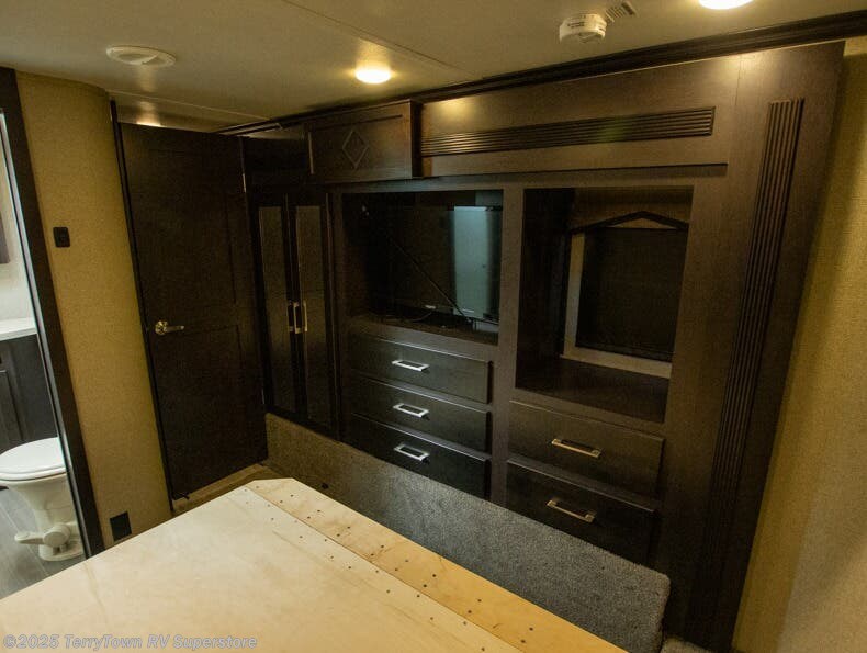 This Raptor toy hauler by Keystone has broken free from the rugged models of years past with its sharp, refined accessories and modern style, and as an industry first, this model includes the largest made-for-RV refrigerator which is a residential-size of 18 cubic feet. This toy hauler is also a part of the only towable manufacturer who incorporates color-coded and numbered electrical wiring in its products, helping you save time and energy when troubleshooting electrical issues. Another best-in-the-industry component that is included with this toy hauler is the 3-year limited structural warranty backed by Keystone RV which will ensure that this unit truly is built for the long haul.