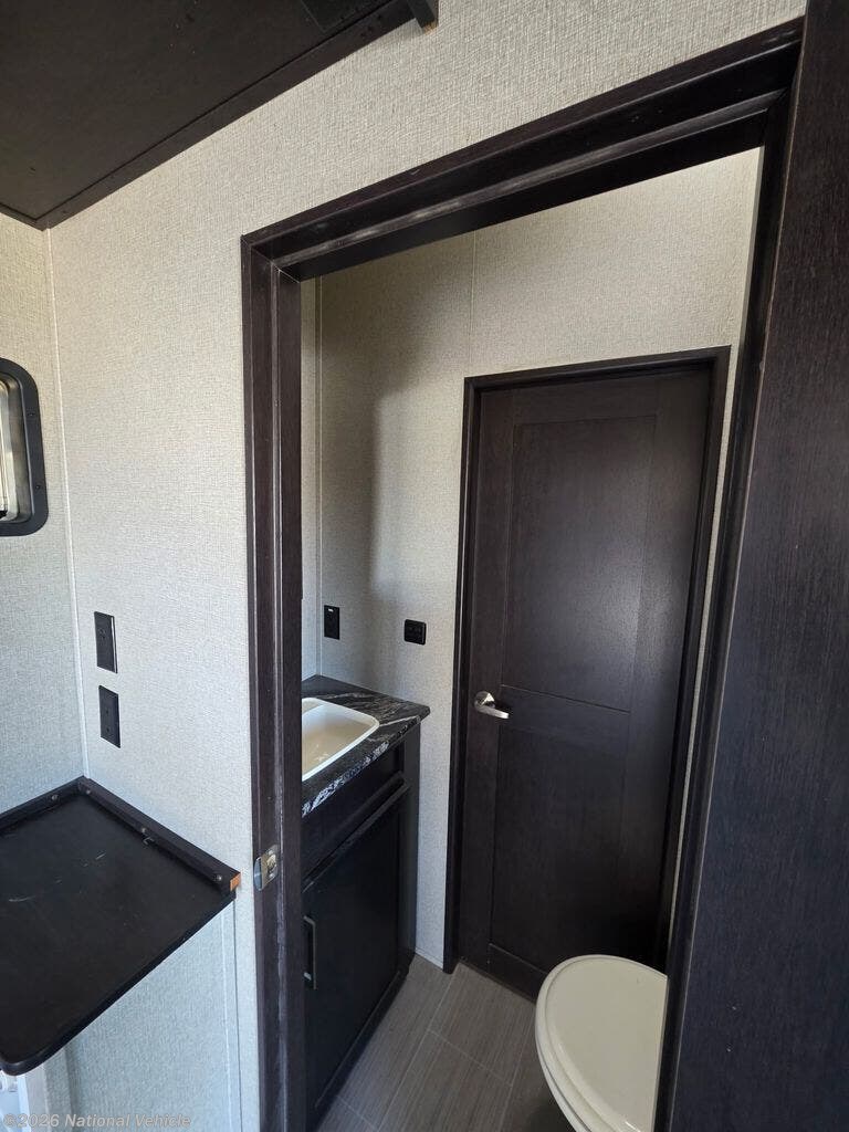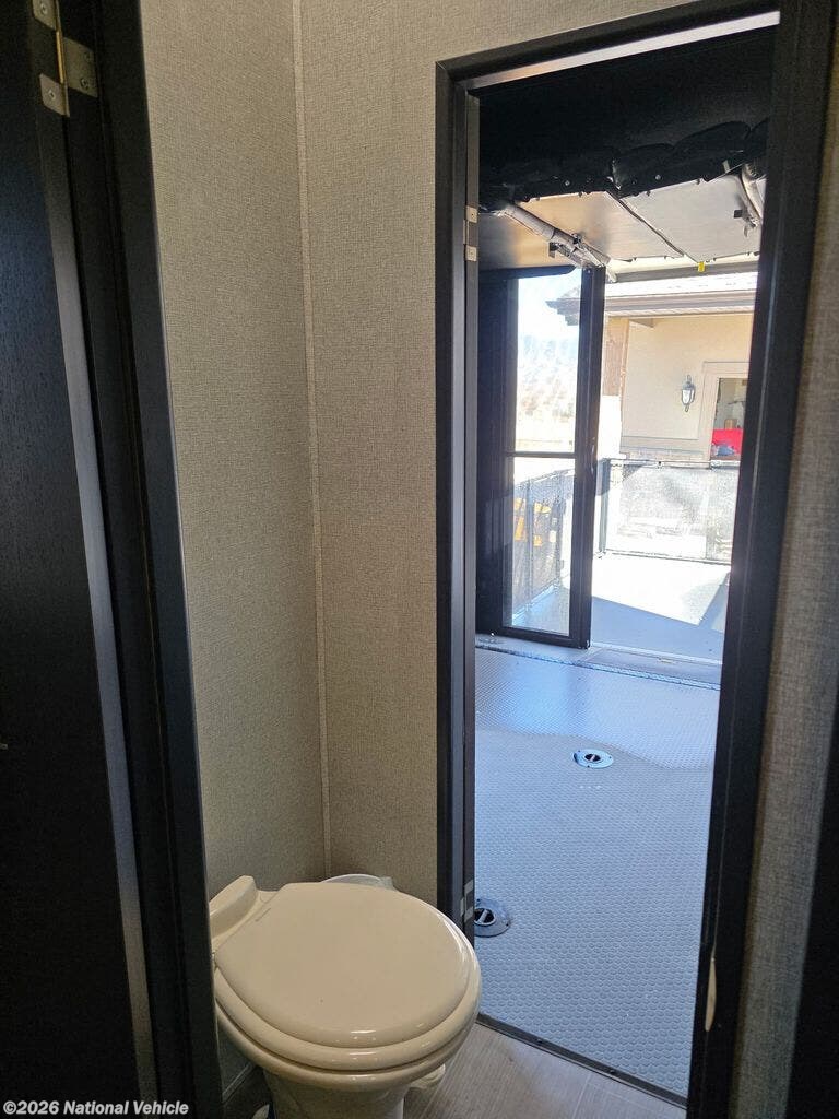Built on a durable, performance-engineered frame with aggressive exterior styling, the Raptor 362TS features a spacious rear garage designed to accommodate your ATVs, motorcycles, or side-by-side with ease. The garage easily converts into a versatile living and sleeping space, complete with opposing sofas, a removable table, electric drop-down queen bed, and a convenient half bath-making it ideal for guests or large families.