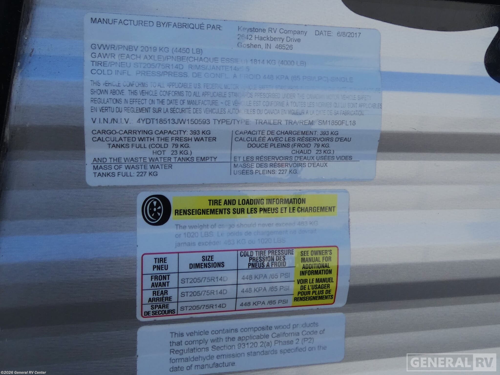 - VIN4YDT18513JW150593