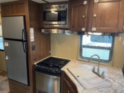 The 2018 Keystone Sprinter 27RL is a stylish and functional travel trailer designed for comfort and convenience on the road. Measuring just under 32 feet in length, this model offers a smart layout that balances living space with towability. At the rear, a spacious living area features dual recliners, a tri-fold sofa, and a free-standing dinette, creating a comfortable spot for relaxing or entertaining. Large windows bring in natural light, enhancing the open feel of the interior. The kitchen is fully equipped with stainless steel appliances, ample counter space, and plenty of storage, making meal prep easy whether on a weekend trip or extended stay. Toward the front, the private master bedroom includes a queen bed, dual wardrobes, and overhead cabinets, ensuring restful nights and organized storage. The bathroom is designed with a radius shower, vanity, and linen cabinet for added convenience. With residential-style finishes, durable construction, and modern amenities, the 2018 Keystone Sprinter 27RL provides a home-like experience for travelers seeking adventure and relaxation.