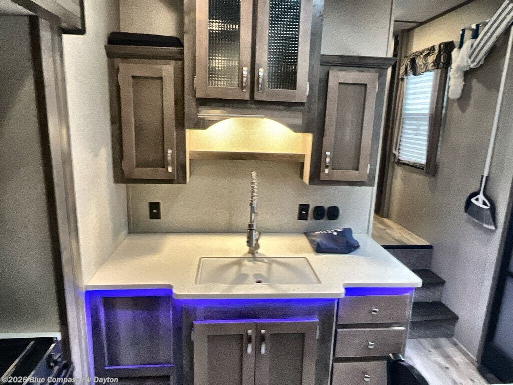 With any Keystone Sprinter fifth wheel you know the design is specifically made to "Make Camping Easy" with every feature. From the Performance insulation package, 100" wide body construction, enclosed underbelly with direct vent heat, and 4 point auto level up, you will be camping during any season you like. You will enjoy the lighting from the kitchen skylight, the convenience and style of the industrial pull-down sprayer faucet and large stainless steel sink, plus the look of the crown molding on the cabinetry. There are many more standard features and options to choose from to make your perfect Sprinter fifth wheel fit your family's lifestyle!