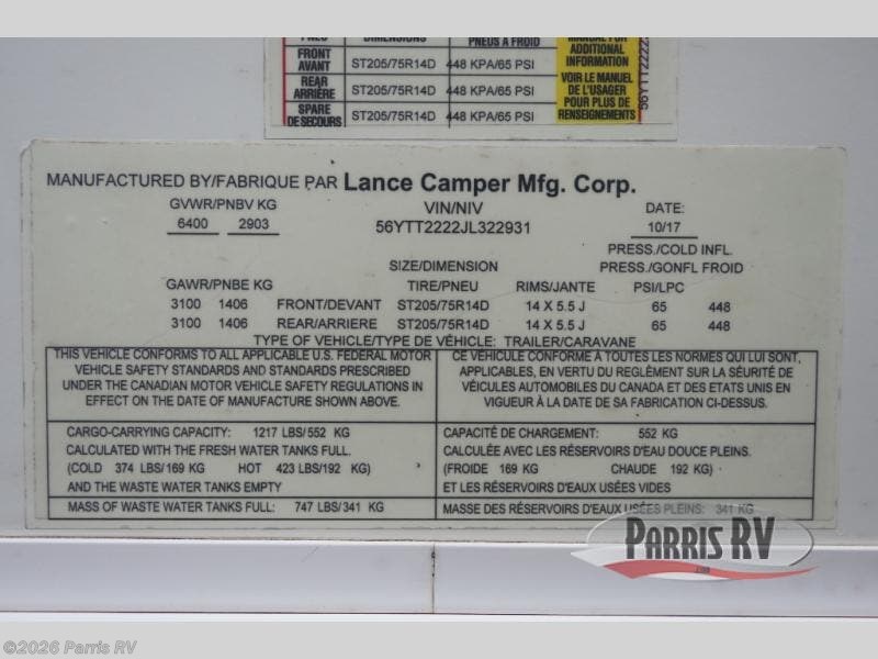 Request More Info on this 2018 Lance Lance Travel Trailers 2295 Offered for sale by Parris RV