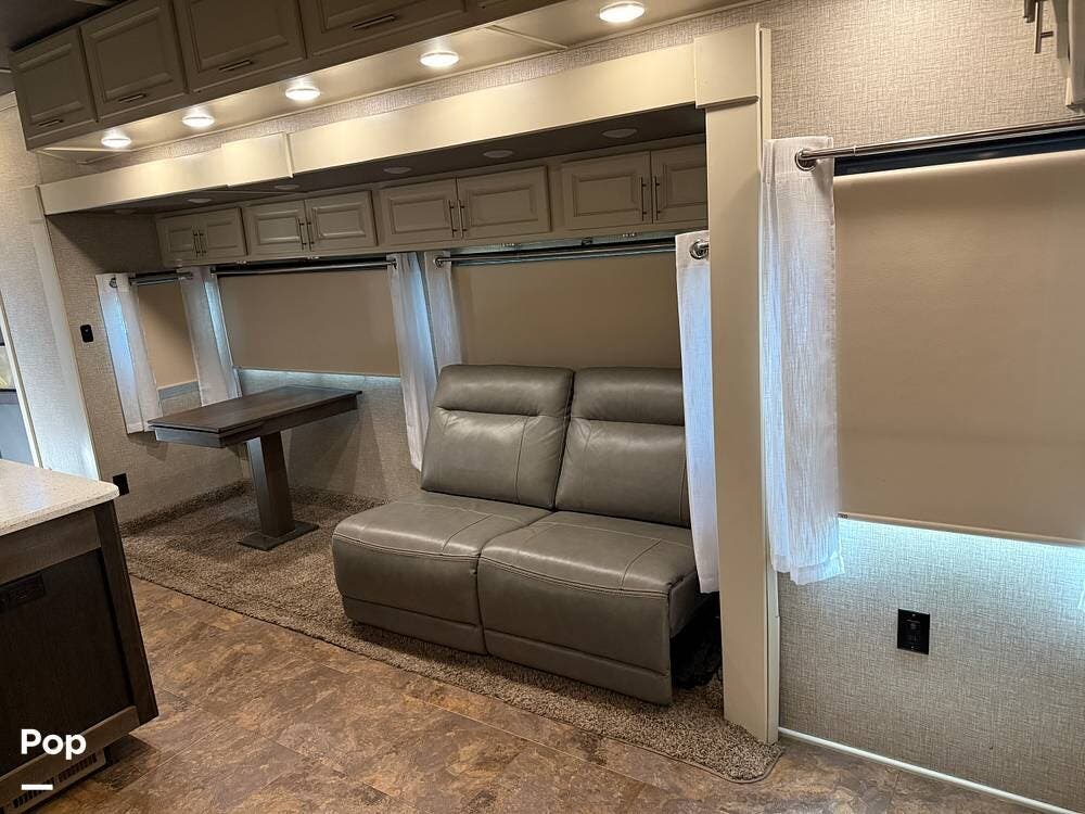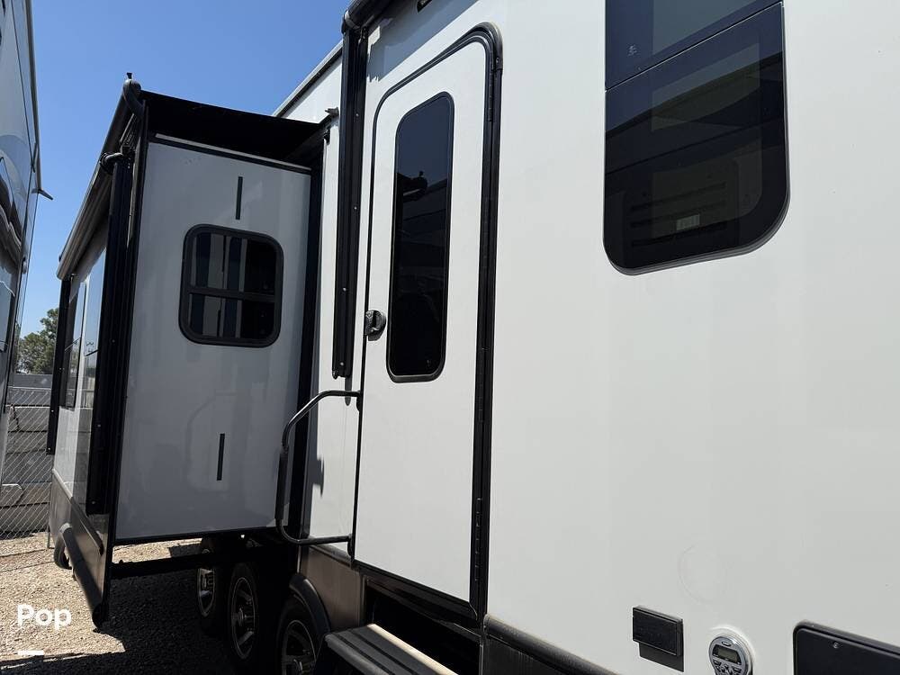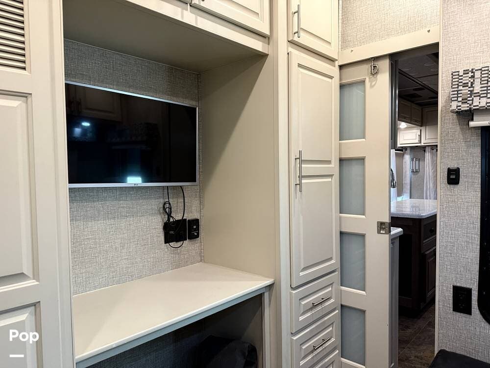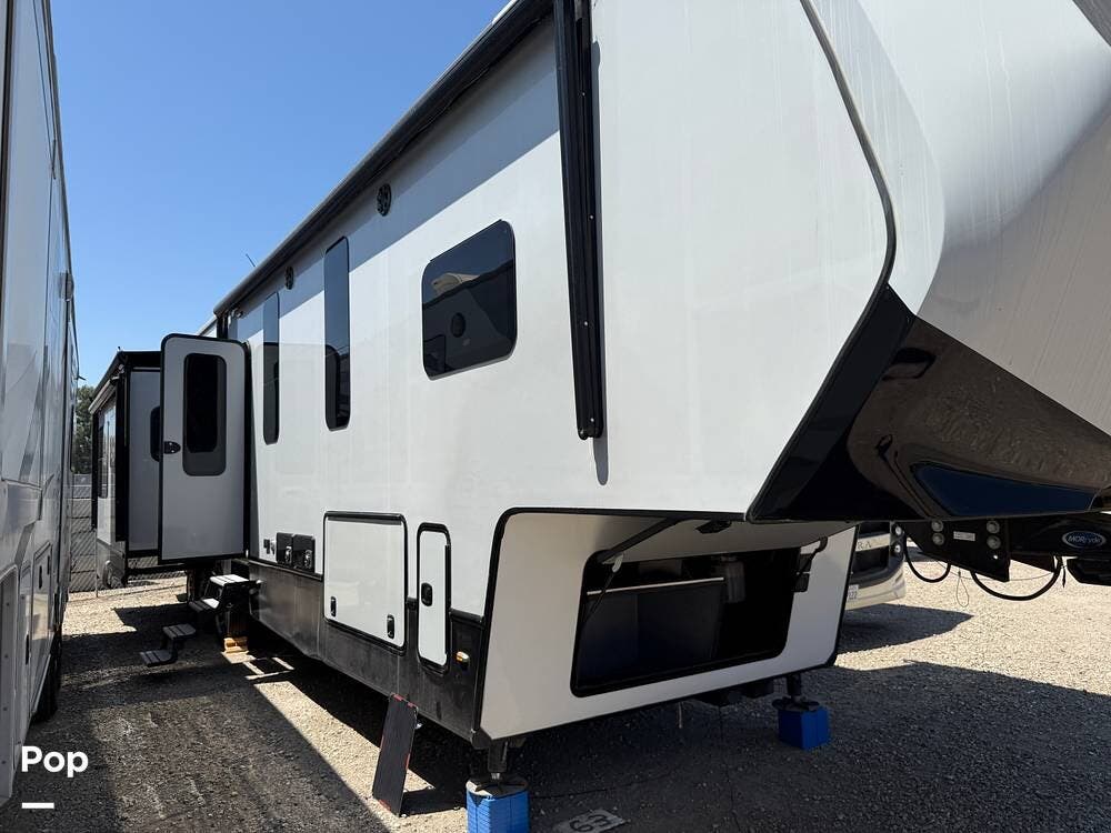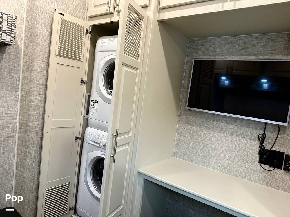 This luxurious fifth wheel is a true "condo" on wheels with two bedrooms! Includes a separate room for use as a mobile office/den for the traveling professional. Includes washer and dryer unit. Additionally, the den can accommodate a bed with a jack-knife sofa sleeper.