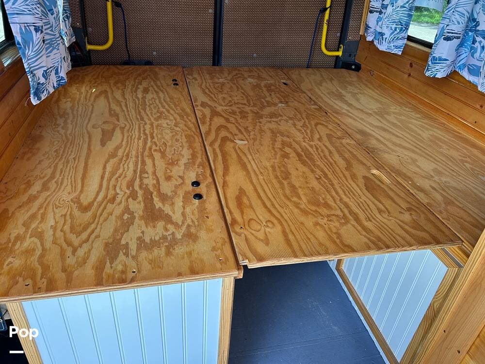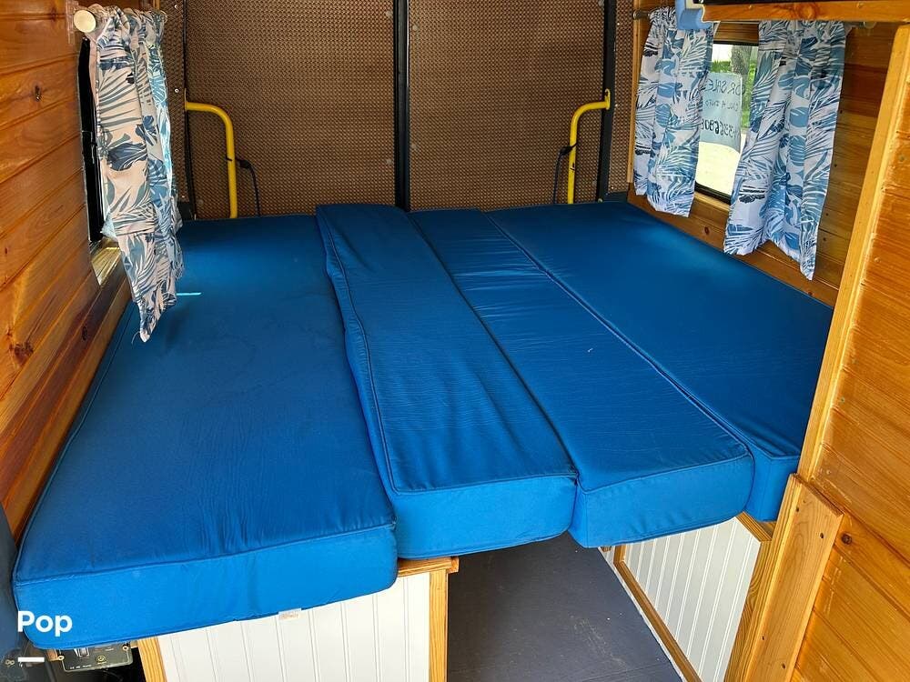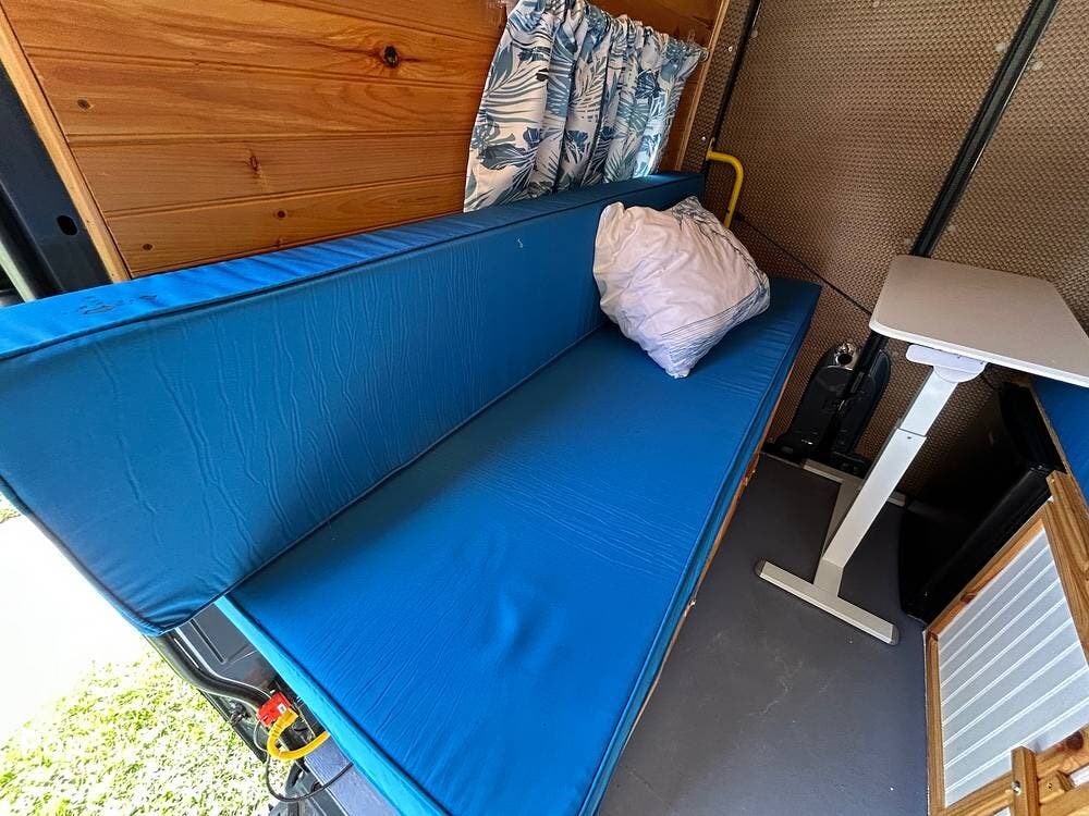 The van has a toilet/shower, a mini fridge, a microwave, a closet, and a dinette that converts into a queen bed. Has 124,000 miles.