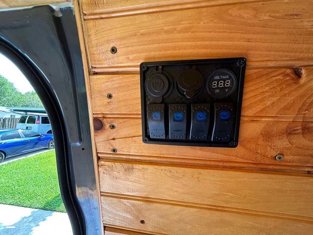 The back and side doors have screens. The van has solar power for those "off-the-grid " trips and comes with a backup camera.