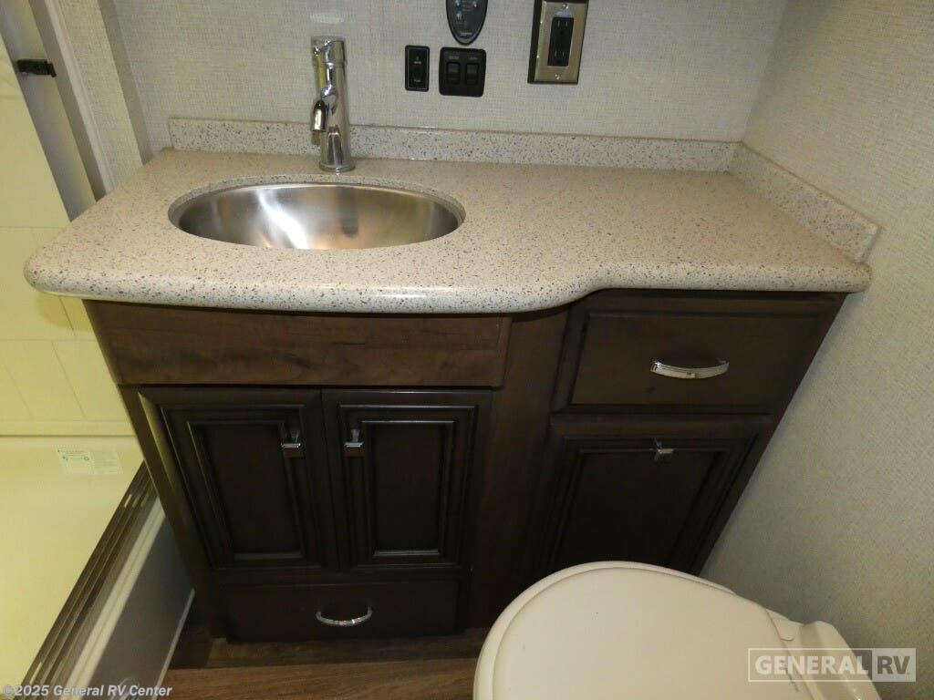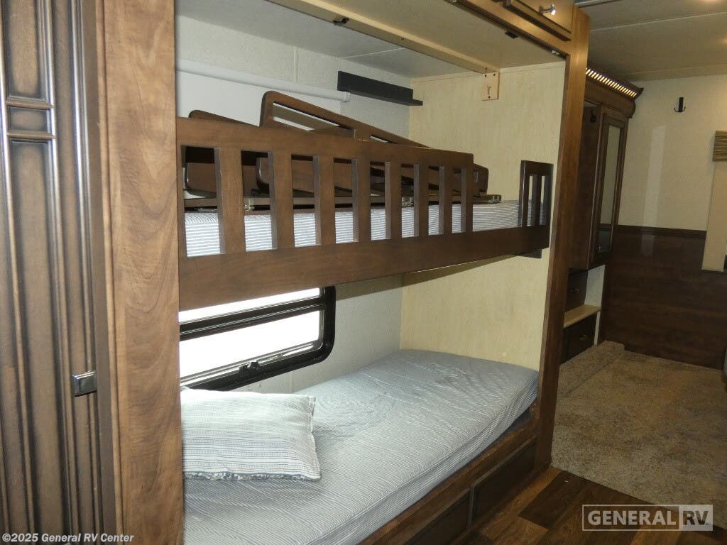 Experience the open road like never before with the 2018 Newmar Bay Star 3406. This luxurious RV combines comfort and style, offering ample space for up to eight adventurers. The thoughtfully designed floorplan features a front living area with a cozy jack-knife sofa and a dinette, perfect for family gatherings or relaxing after a day of exploration. The center kitchen is equipped with a mid-size refrigerator and a three-burner cooktop, ensuring you can whip up your favorite meals with ease. As you move towards the rear, you'll find a versatile bunkhouse that transforms into a wardrobe, providing flexible sleeping arrangements for the whole family. The master suite boasts a plush queen bed and ample storage, making it your personal retreat. With a spacious bathroom featuring a plastic/glass shower, you'll feel right at home. This RV is built on a sturdy Ford F-Series Super Duty chassis, powered by a robust Triton V10 engine, ensuring a smooth and powerful drive. Visit your nearest General RV dealership to explore the Bay Star 3406 and start your next adventure today!