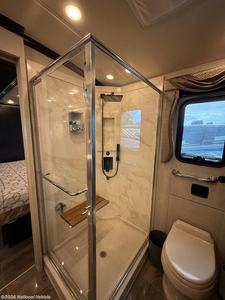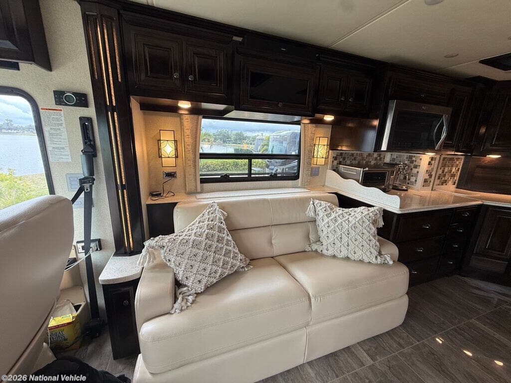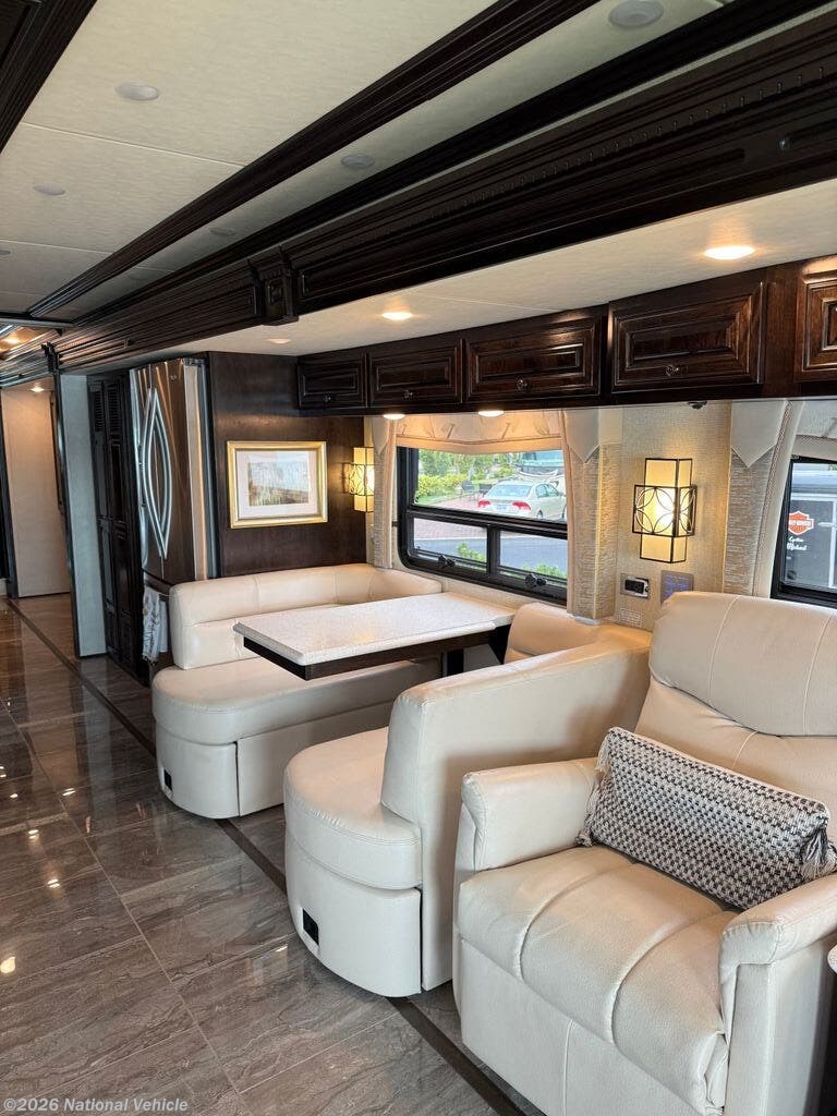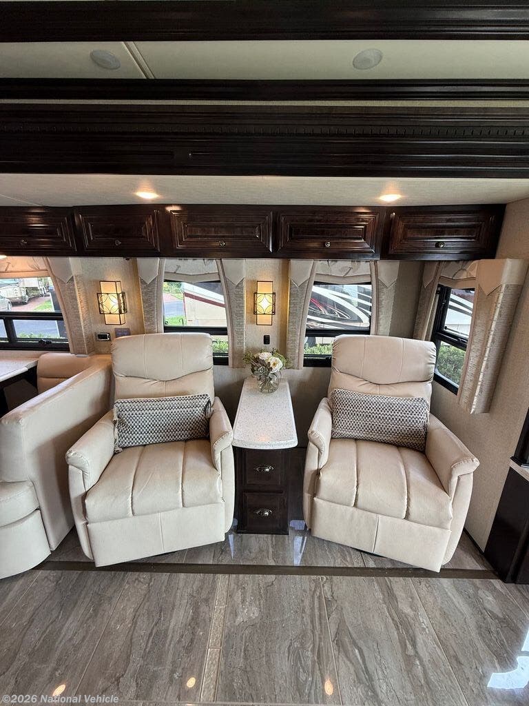 The interior showcases the elevated fit and finish exclusive to Newmar, enhanced further by the 50th Anniversary Edition details. The front living area has been thoughtfully reconfigured with luxury recliners in place of one of the sofas, creating a refined, residential atmosphere ideal for extended travel or full-time living. Solid hardwood cabinetry, premium furnishings, and Newmar?s renowned construction provide a quiet, comfortable, and upscale environment.