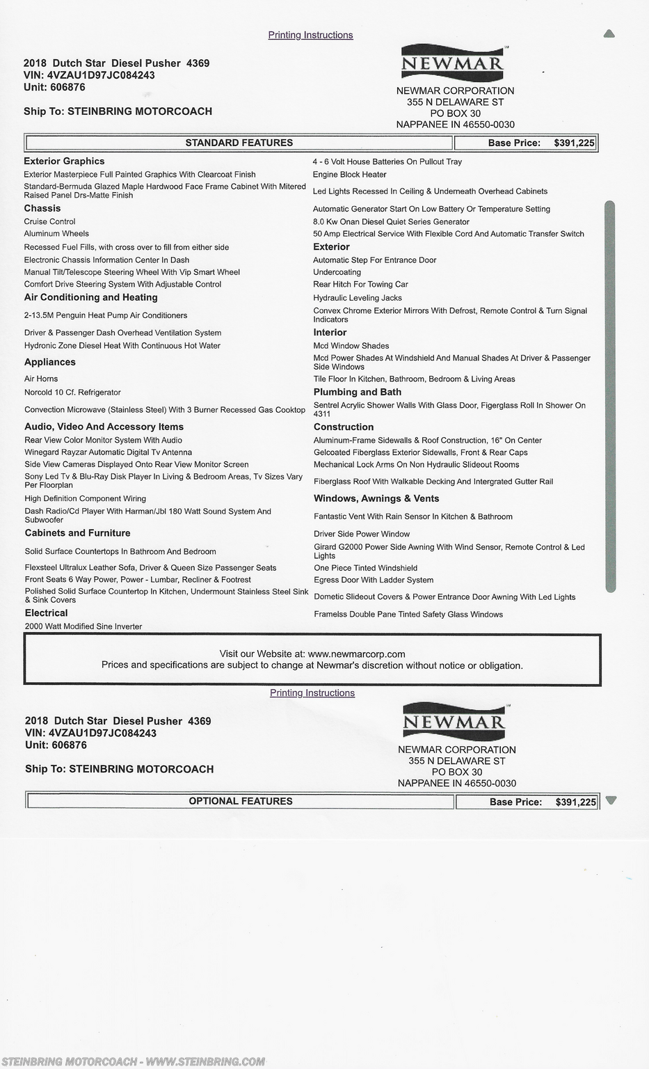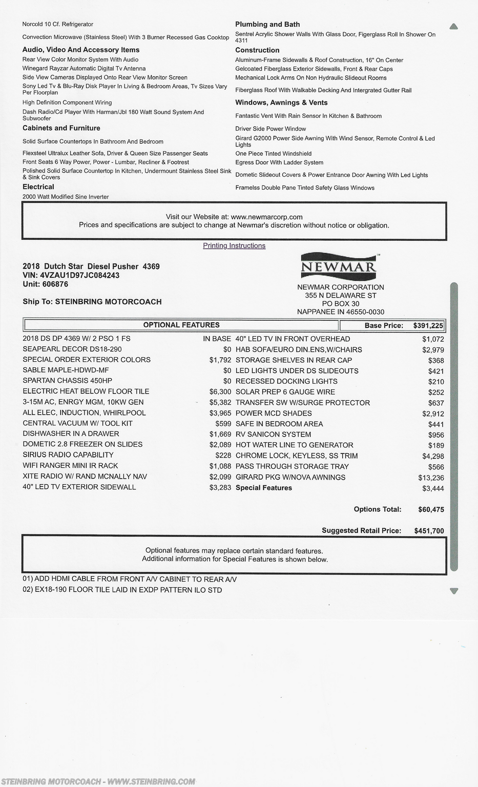 Request More Info on this 2018 Newmar Dutch Star 4369 Offered for sale by Steinbring Motorcoach