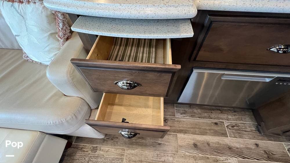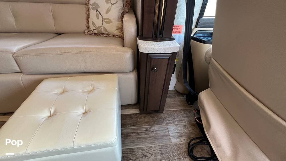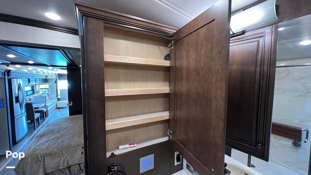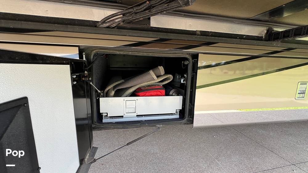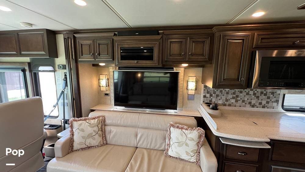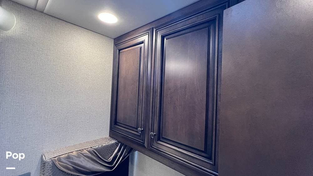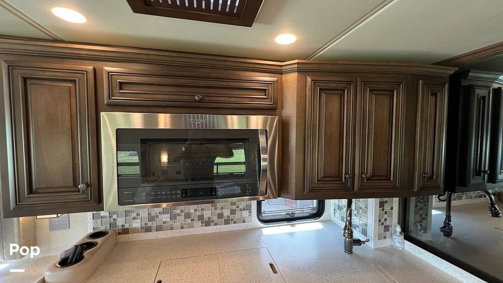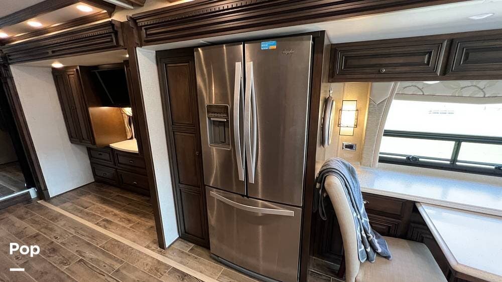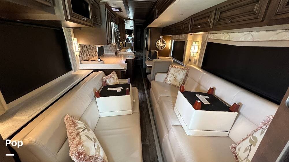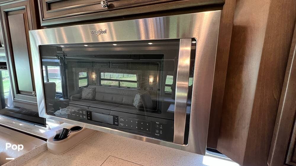 The NEWMAR brand is renowned for its high-quality construction and meticulous attention to detail. Step inside and be greeted by a spacious, meticulously designed living area featuring high-end materials and finishes. Rich leather seating, exquisite cabinetry, and premium flooring create a warm, inviting atmosphere.