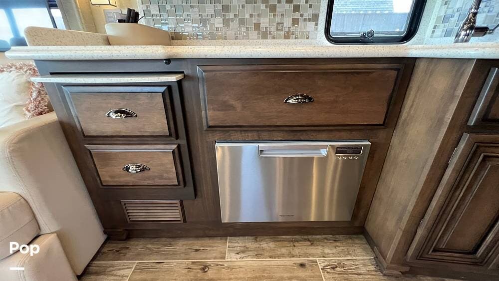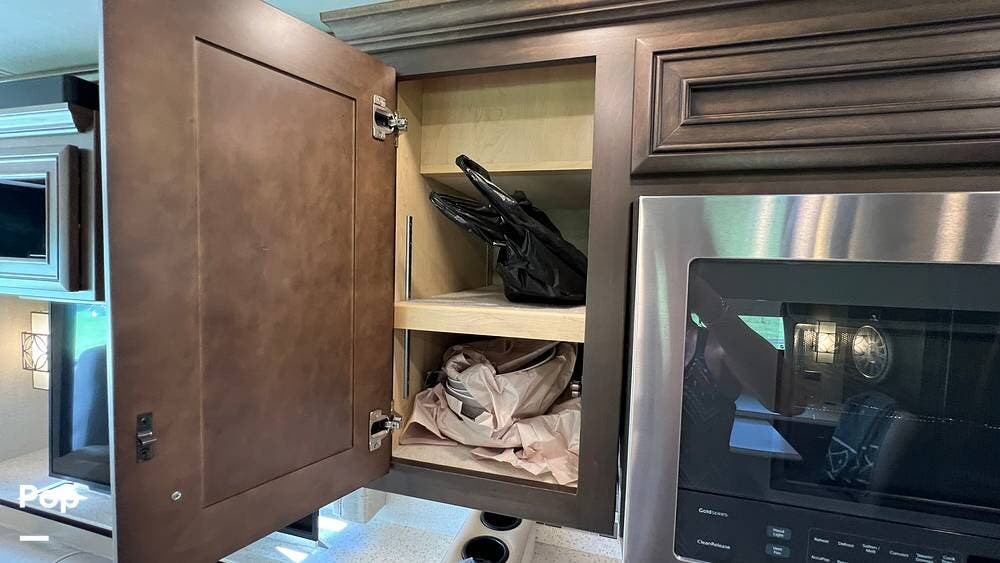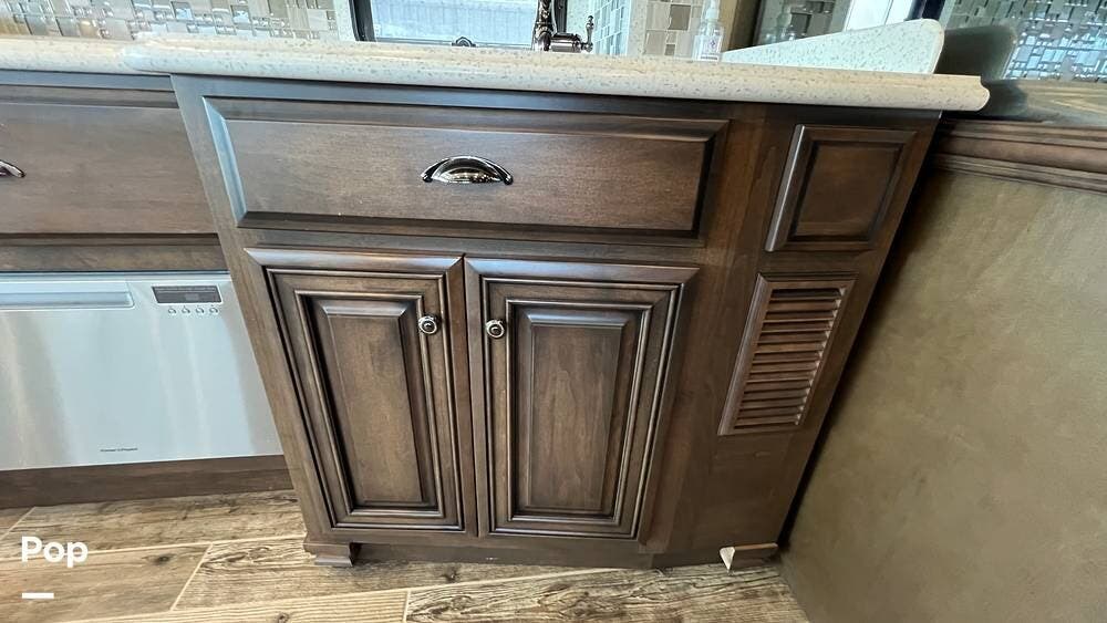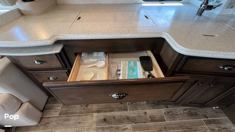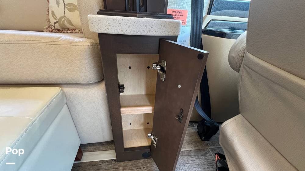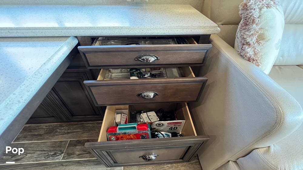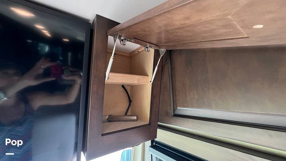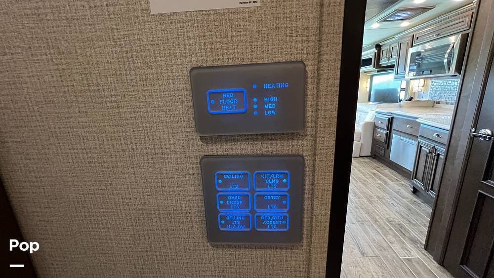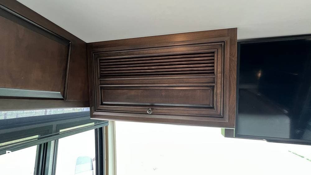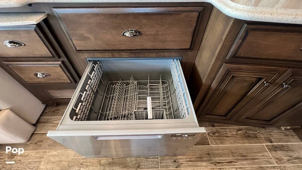 The NEWMAR brand is renowned for its high-quality construction and meticulous attention to detail. Step inside and be greeted by a spacious, meticulously designed living area featuring high-end materials and finishes. Rich leather seating, exquisite cabinetry, and premium flooring create a warm, inviting atmosphere.