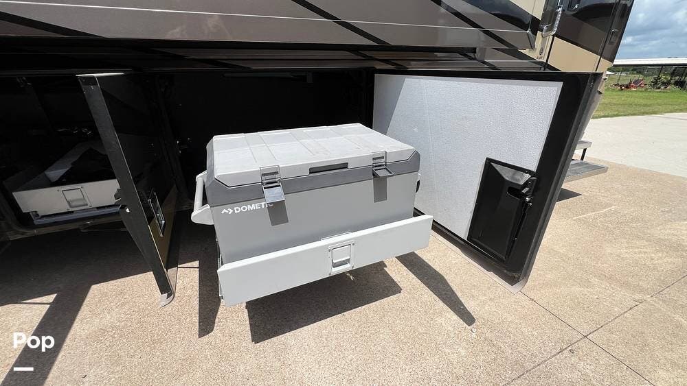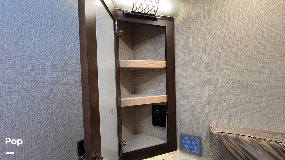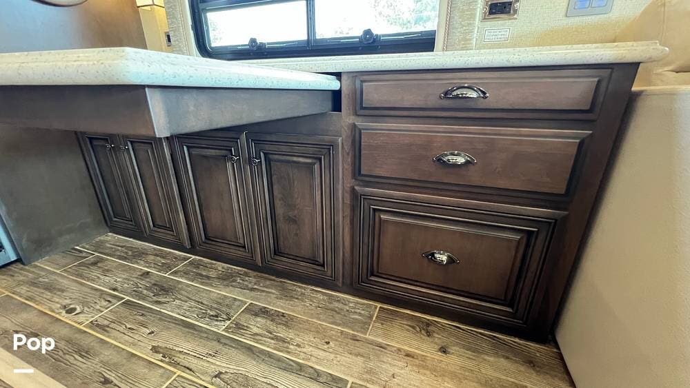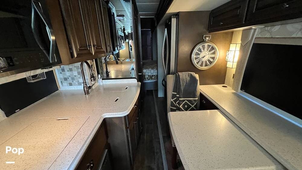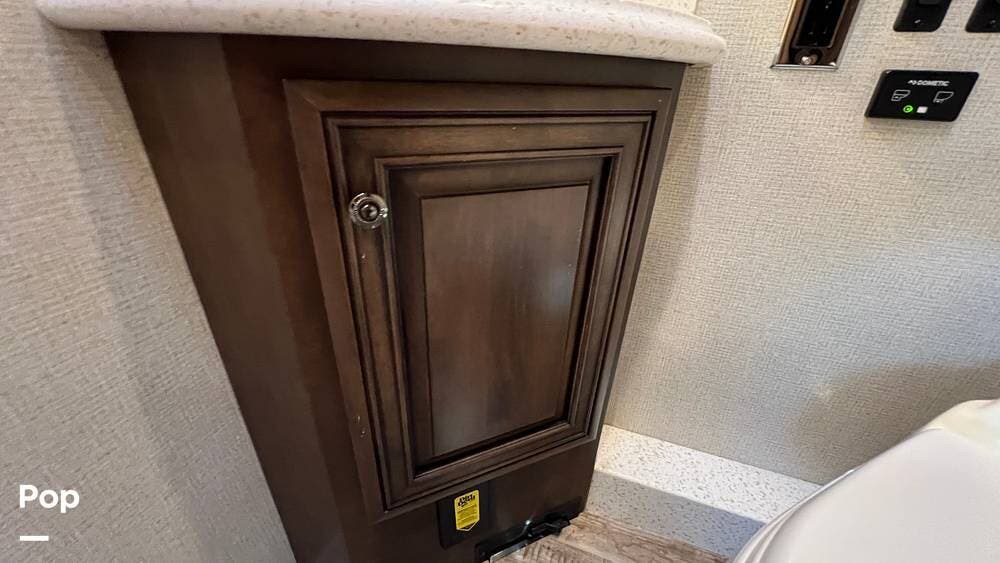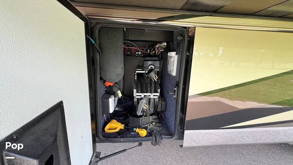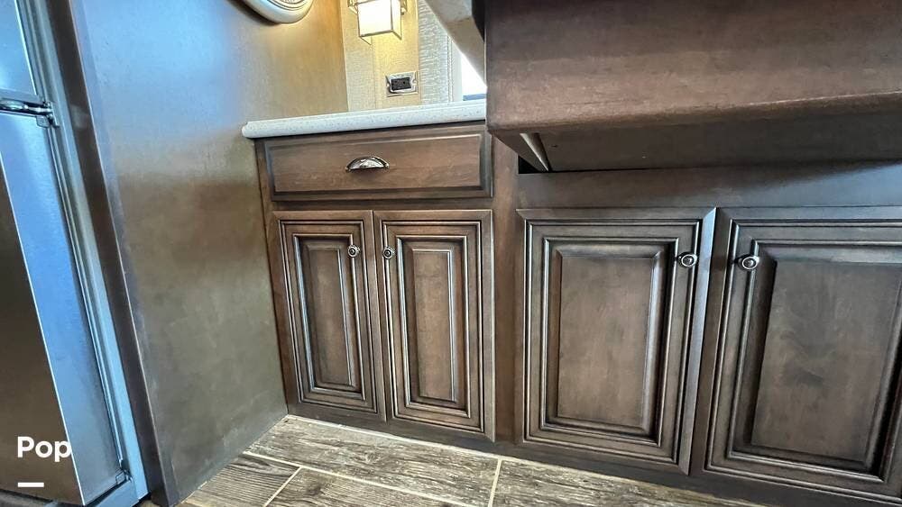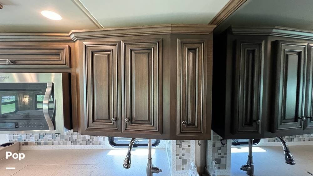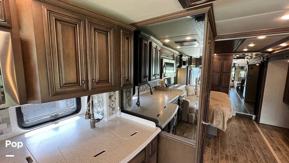 The NEWMAR brand is renowned for its high-quality construction and meticulous attention to detail. Step inside and be greeted by a spacious, meticulously designed living area featuring high-end materials and finishes. Rich leather seating, exquisite cabinetry, and premium flooring create a warm, inviting atmosphere.