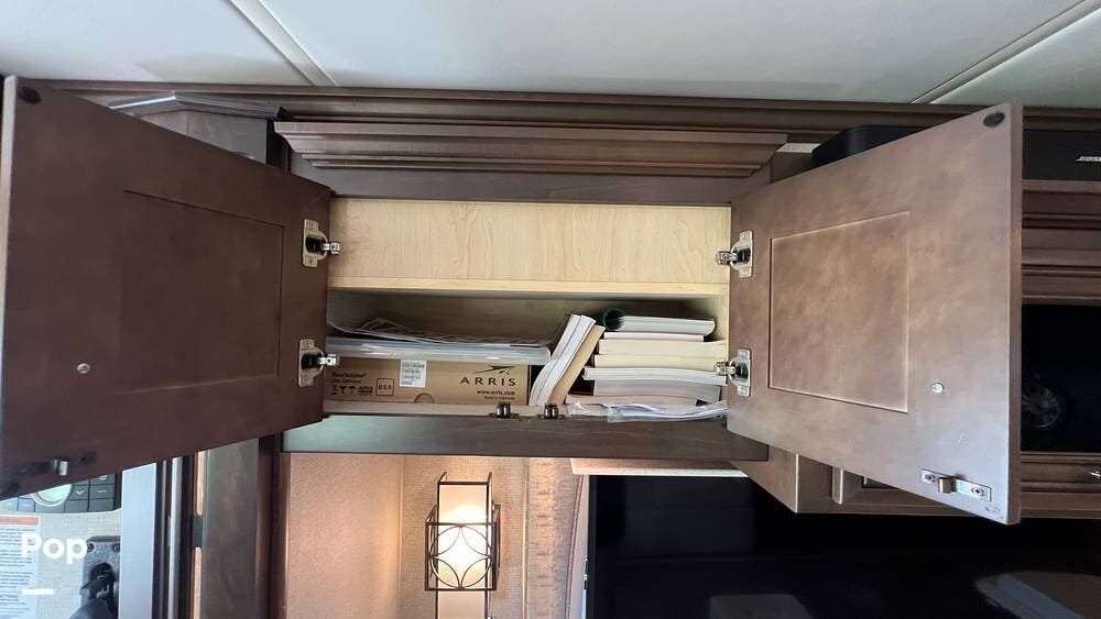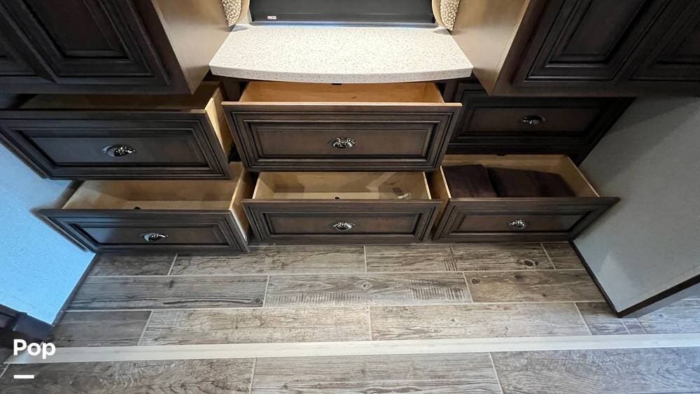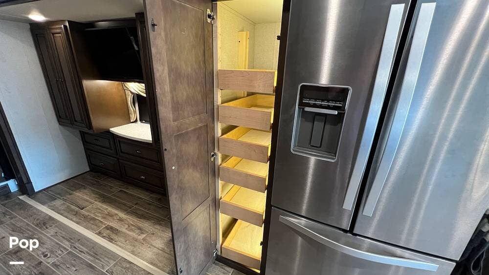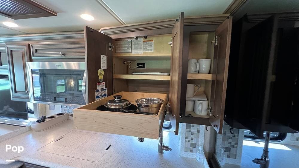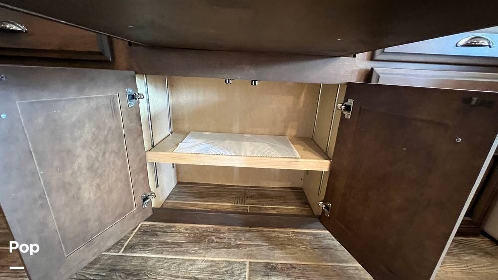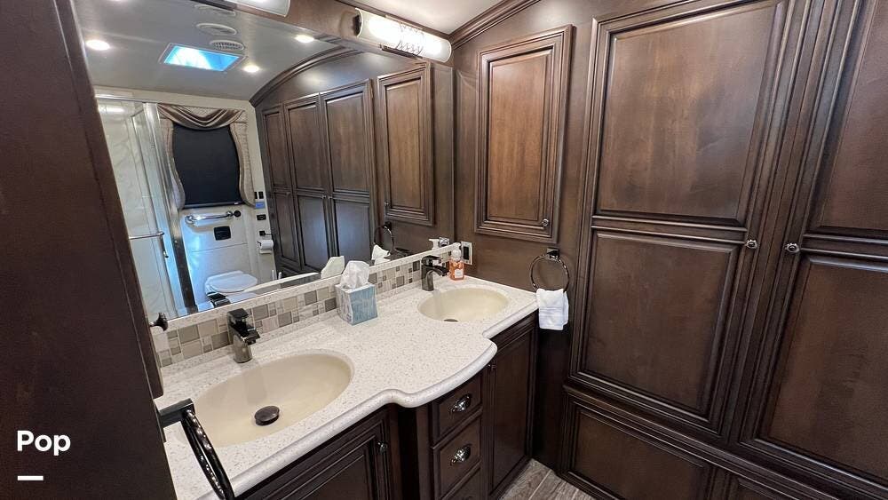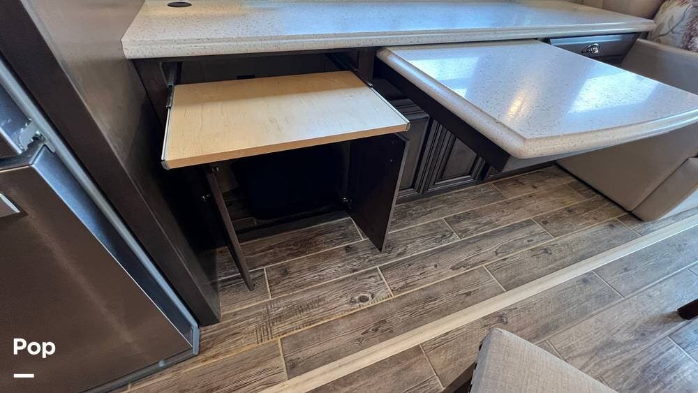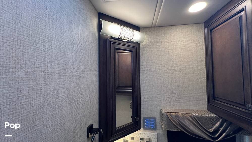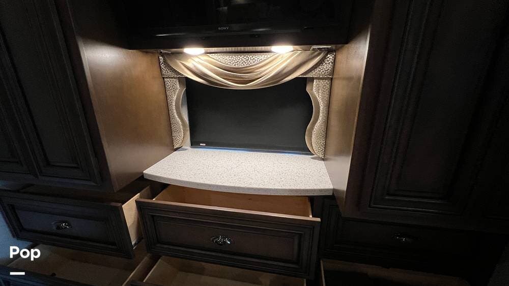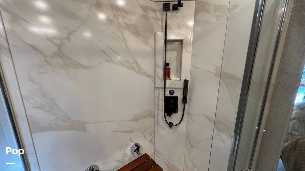 The NEWMAR brand is renowned for its high-quality construction and meticulous attention to detail. Step inside and be greeted by a spacious, meticulously designed living area featuring high-end materials and finishes. Rich leather seating, exquisite cabinetry, and premium flooring create a warm, inviting atmosphere.