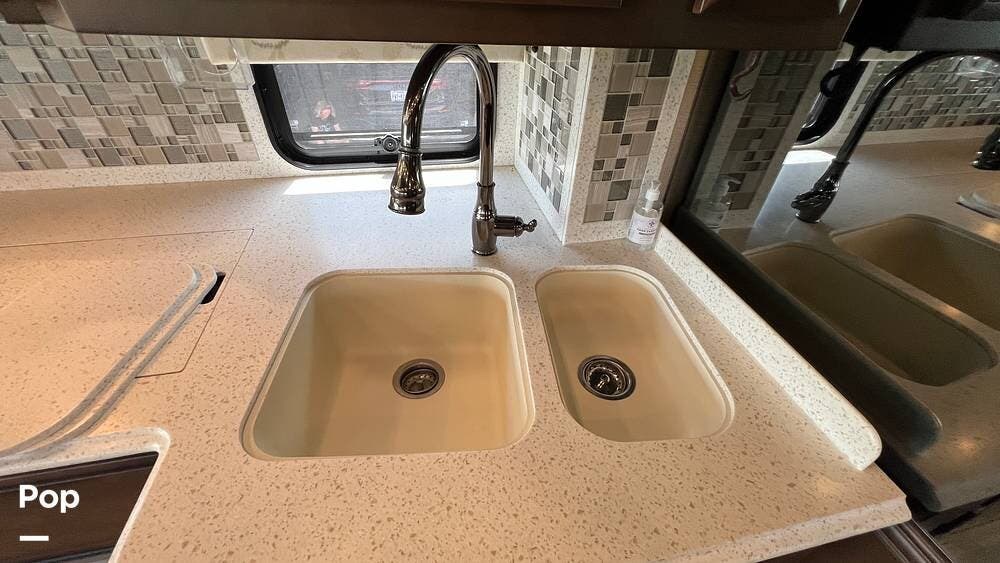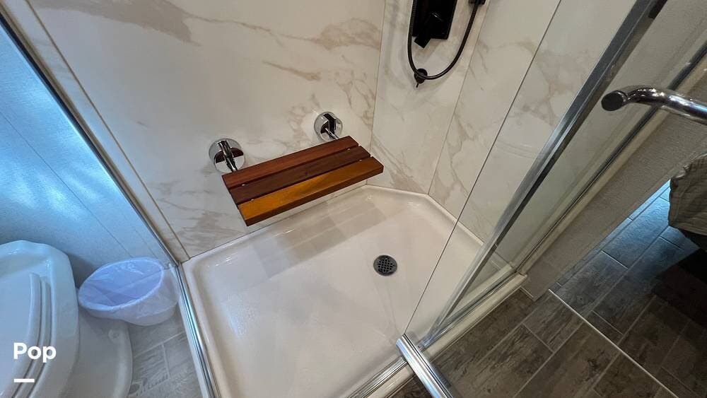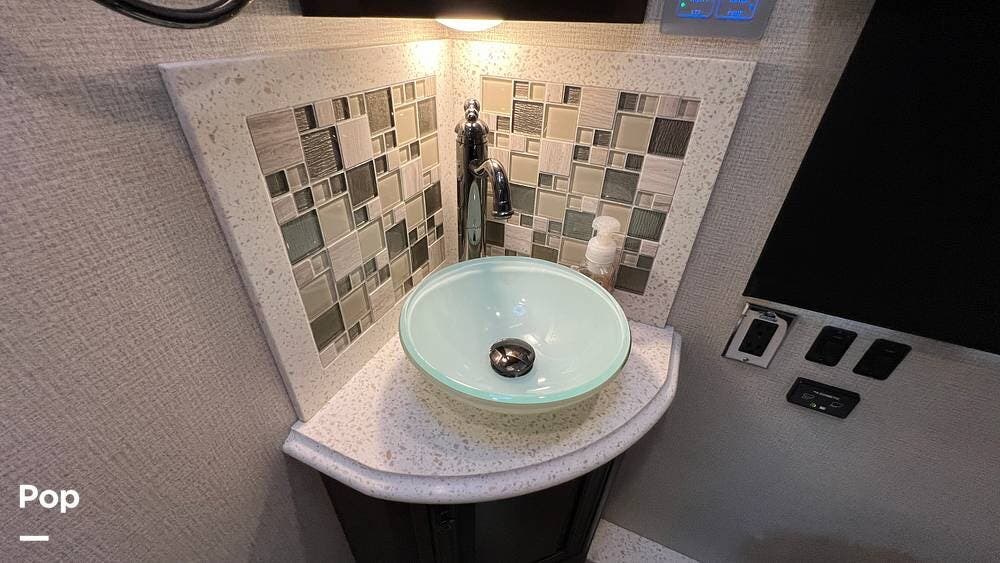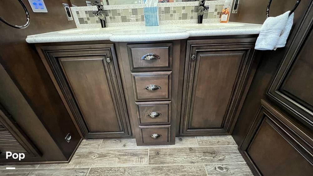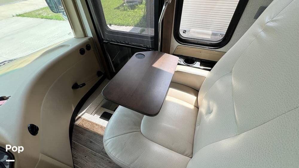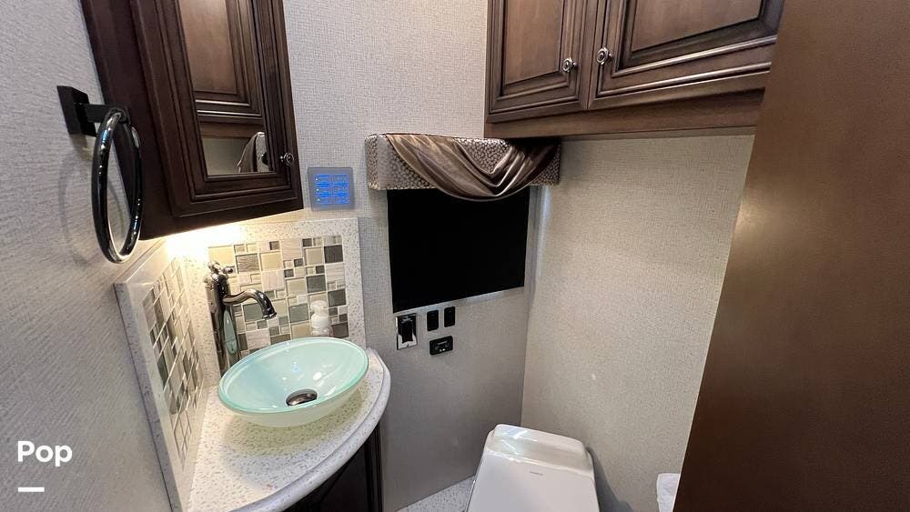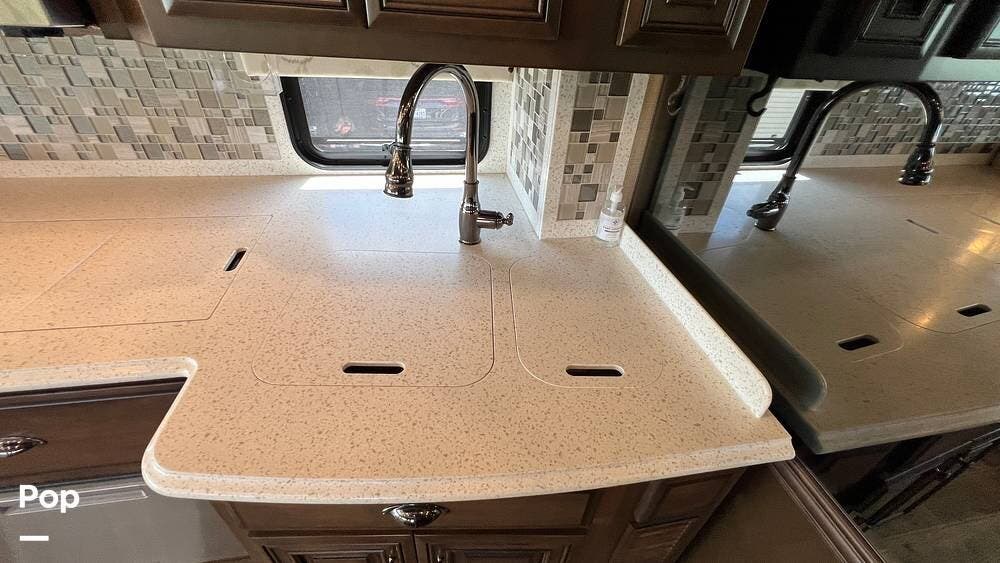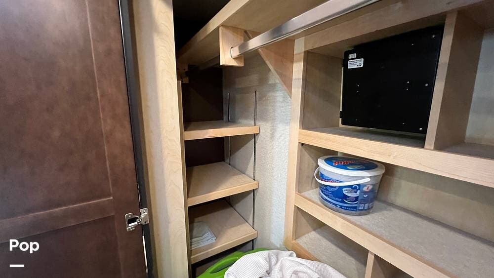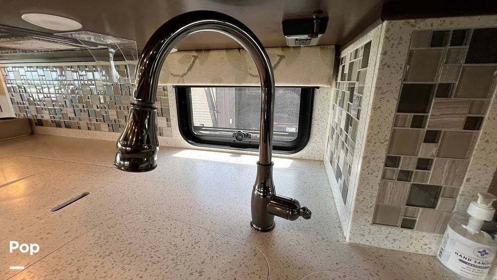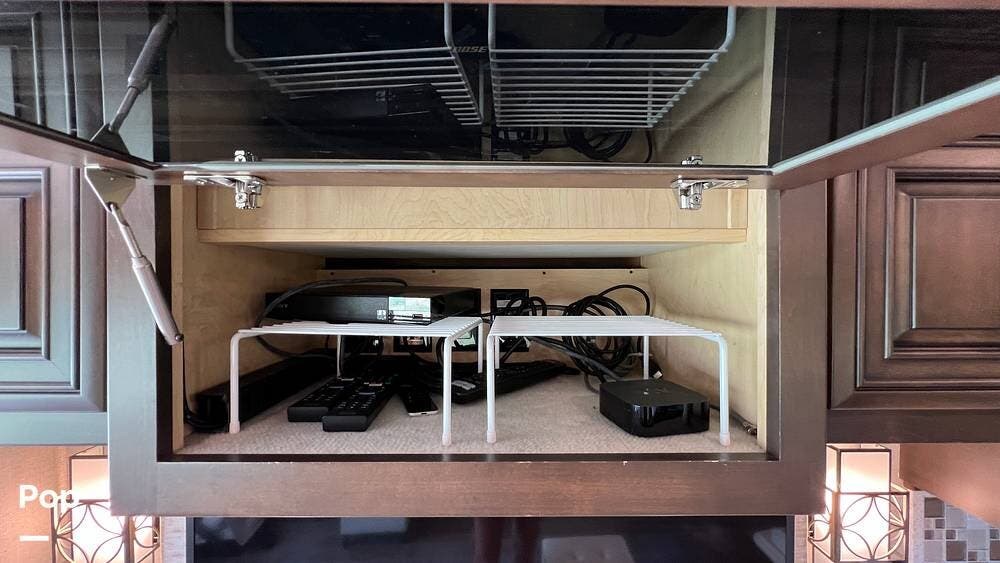 The NEWMAR brand is renowned for its high-quality construction and meticulous attention to detail. Step inside and be greeted by a spacious, meticulously designed living area featuring high-end materials and finishes. Rich leather seating, exquisite cabinetry, and premium flooring create a warm, inviting atmosphere.