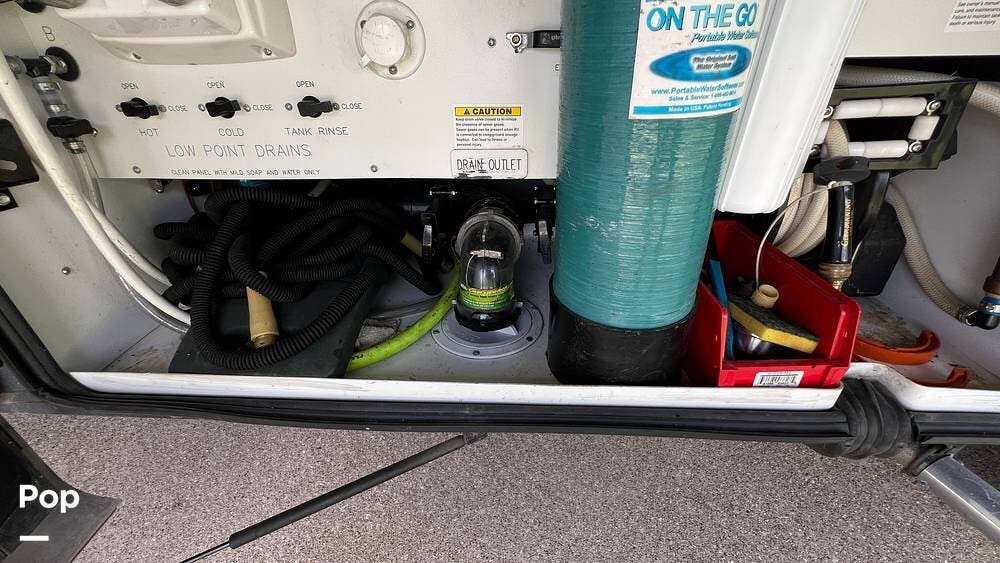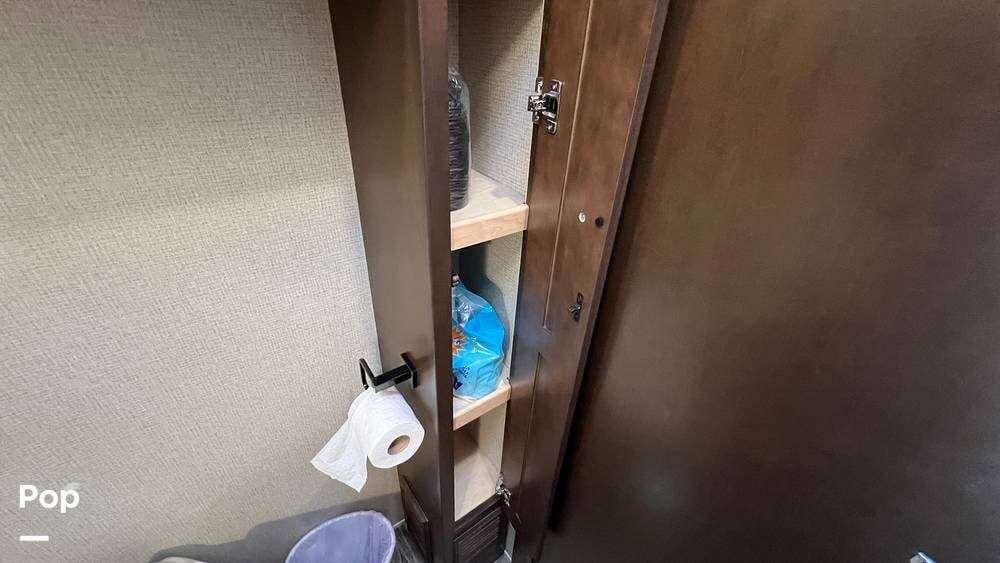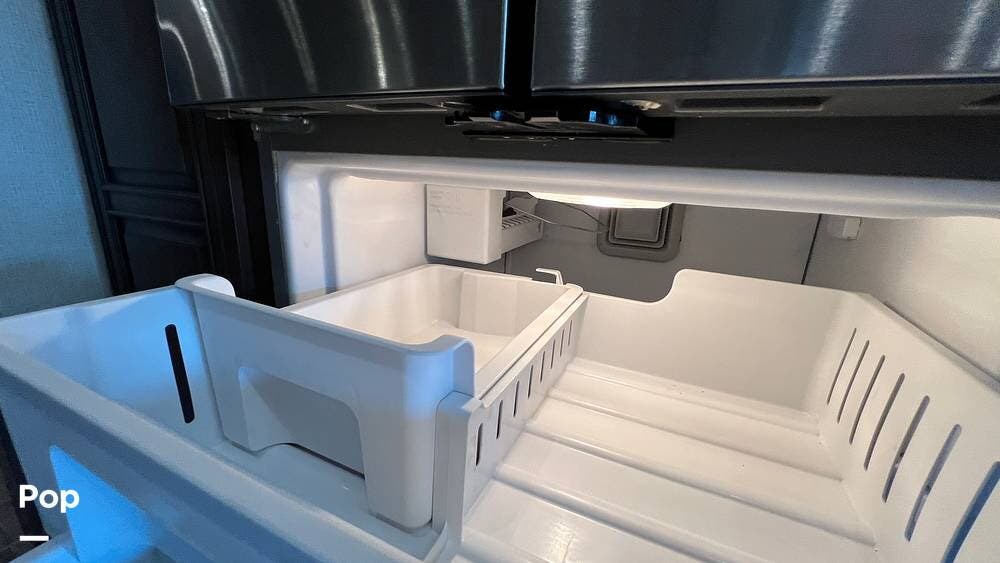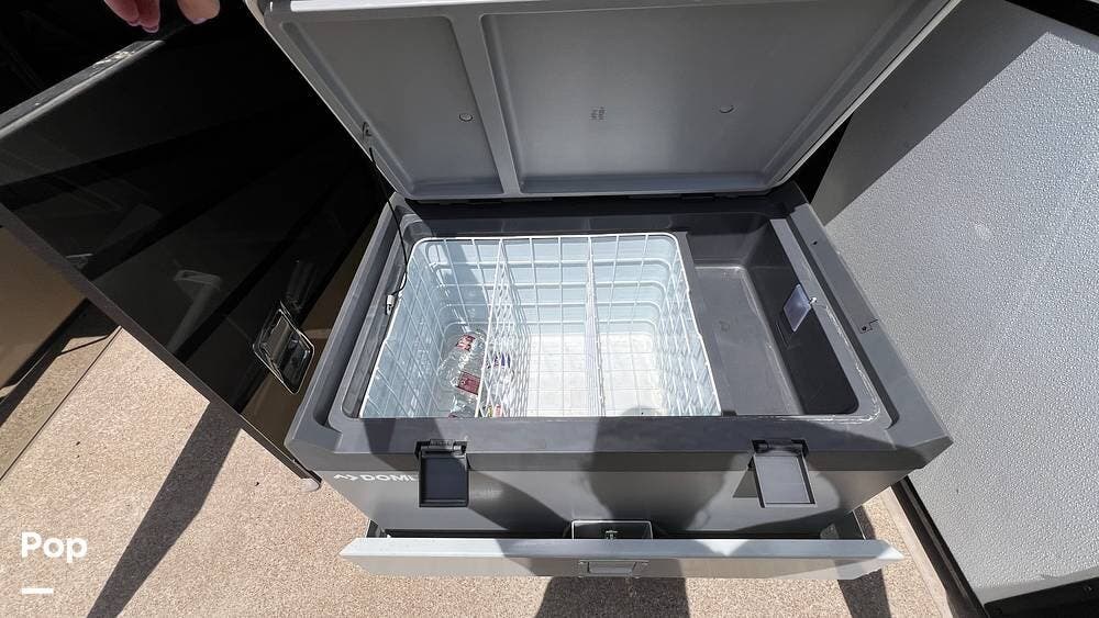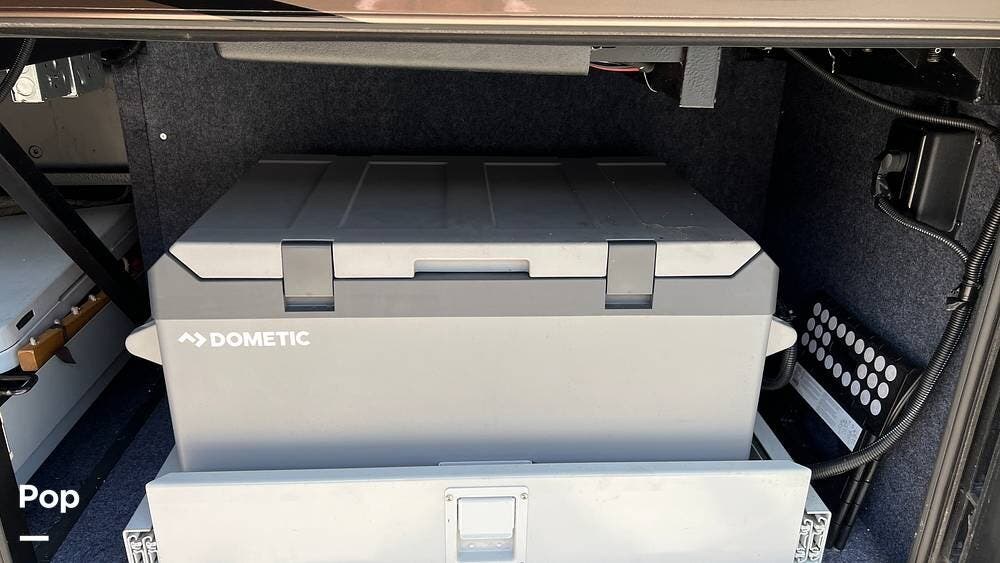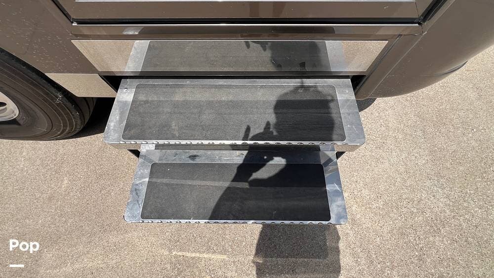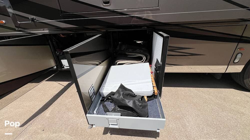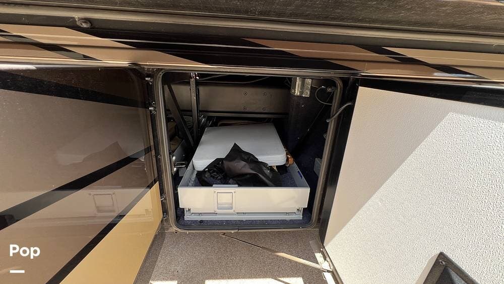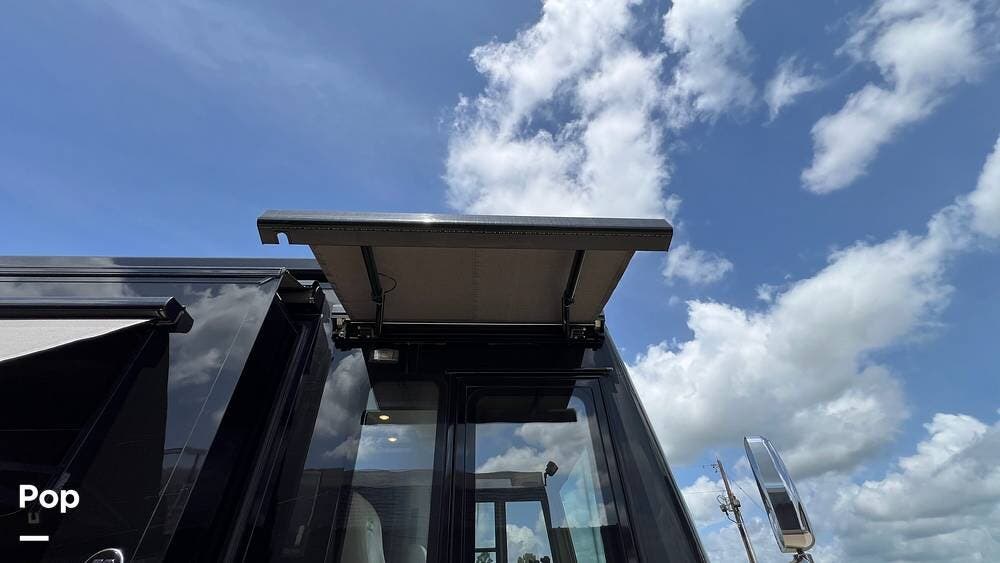 The striking exterior design is not only visually stunning but also functional. The full-body paint job is complemented by a power awning, ample basement storage, and a well-designed outdoor entertainment area, making it perfect for relaxation and entertaining.