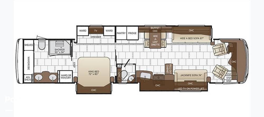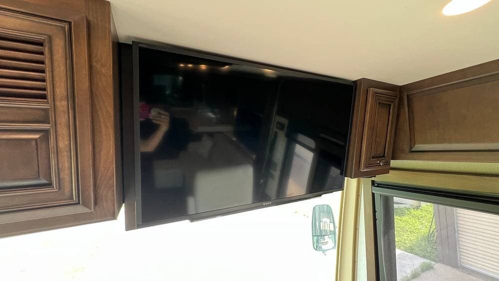 It has State-of-the-Art Technology, including 4 Sony flat-screen televisions, an advanced control panel, and a navigation system that enhances convenience and ease of travel. A wide-angle high-definition rear camera and two side cameras help guide you when parking.