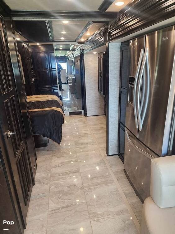 The NEWMAR brand is renowned for its high-quality construction and meticulous attention to detail. Step inside and be greeted by a spacious, meticulously designed living area featuring high-end materials and finishes. Rich leather seating, exquisite cabinetry, and premium flooring create a warm, inviting atmosphere.