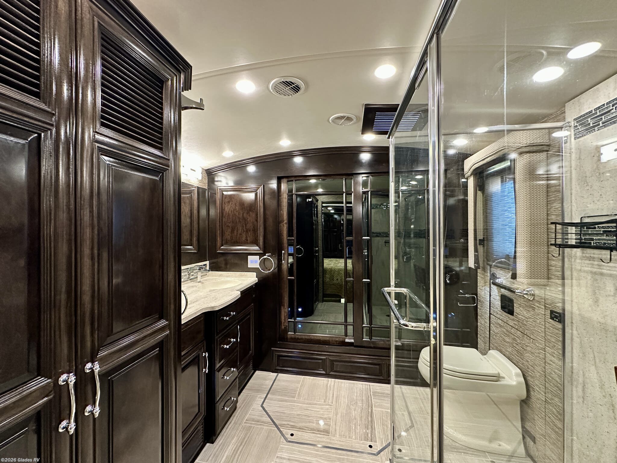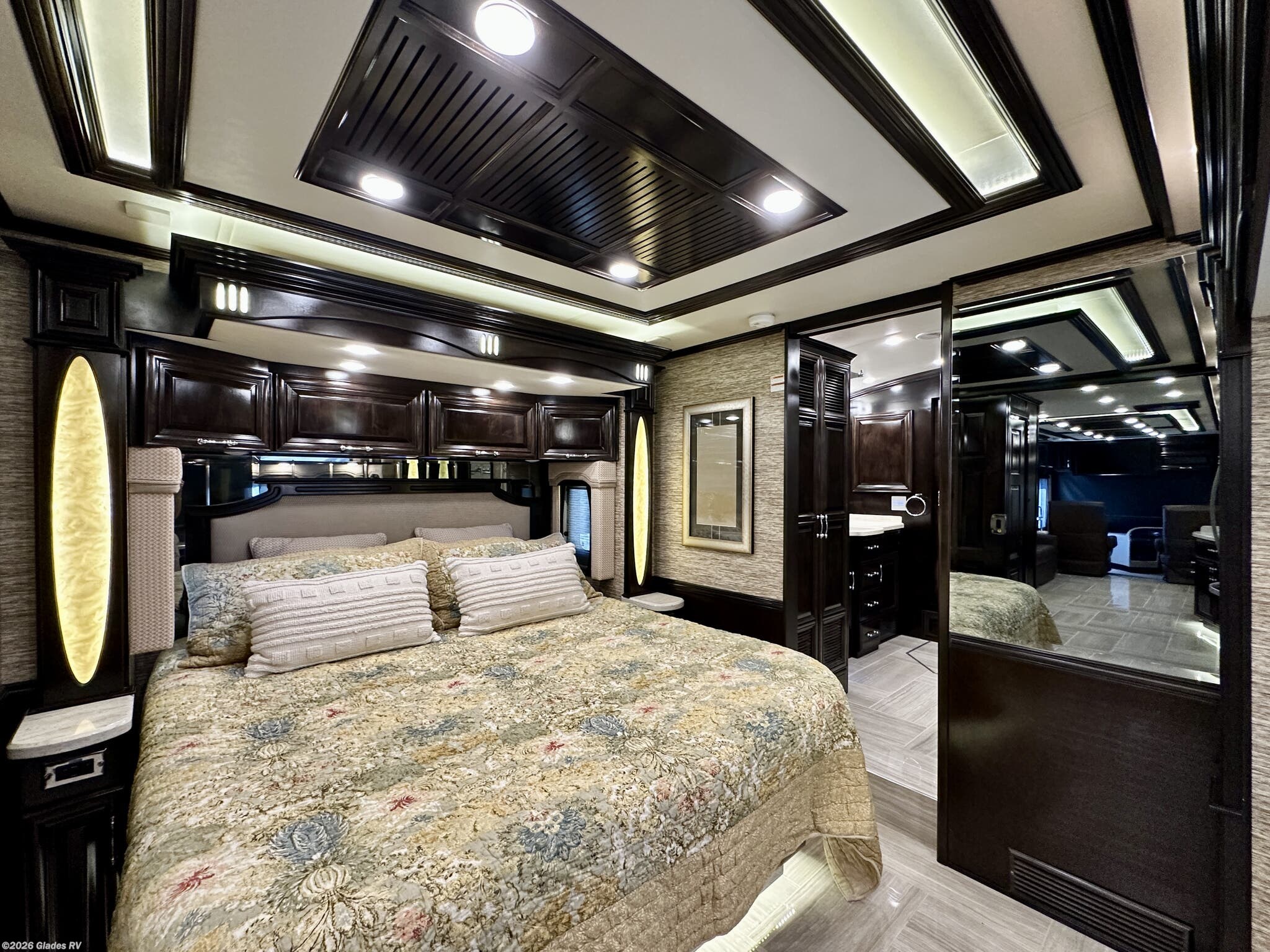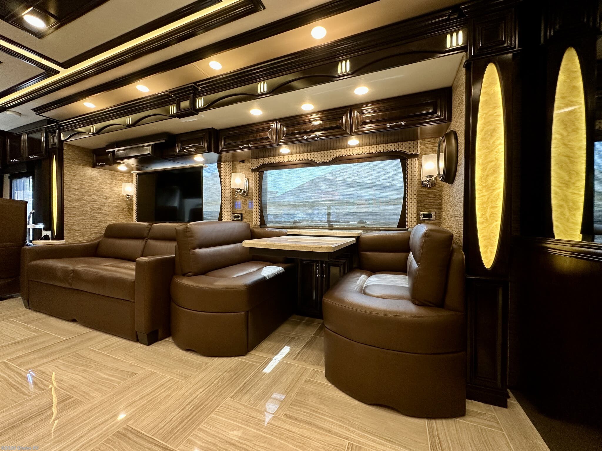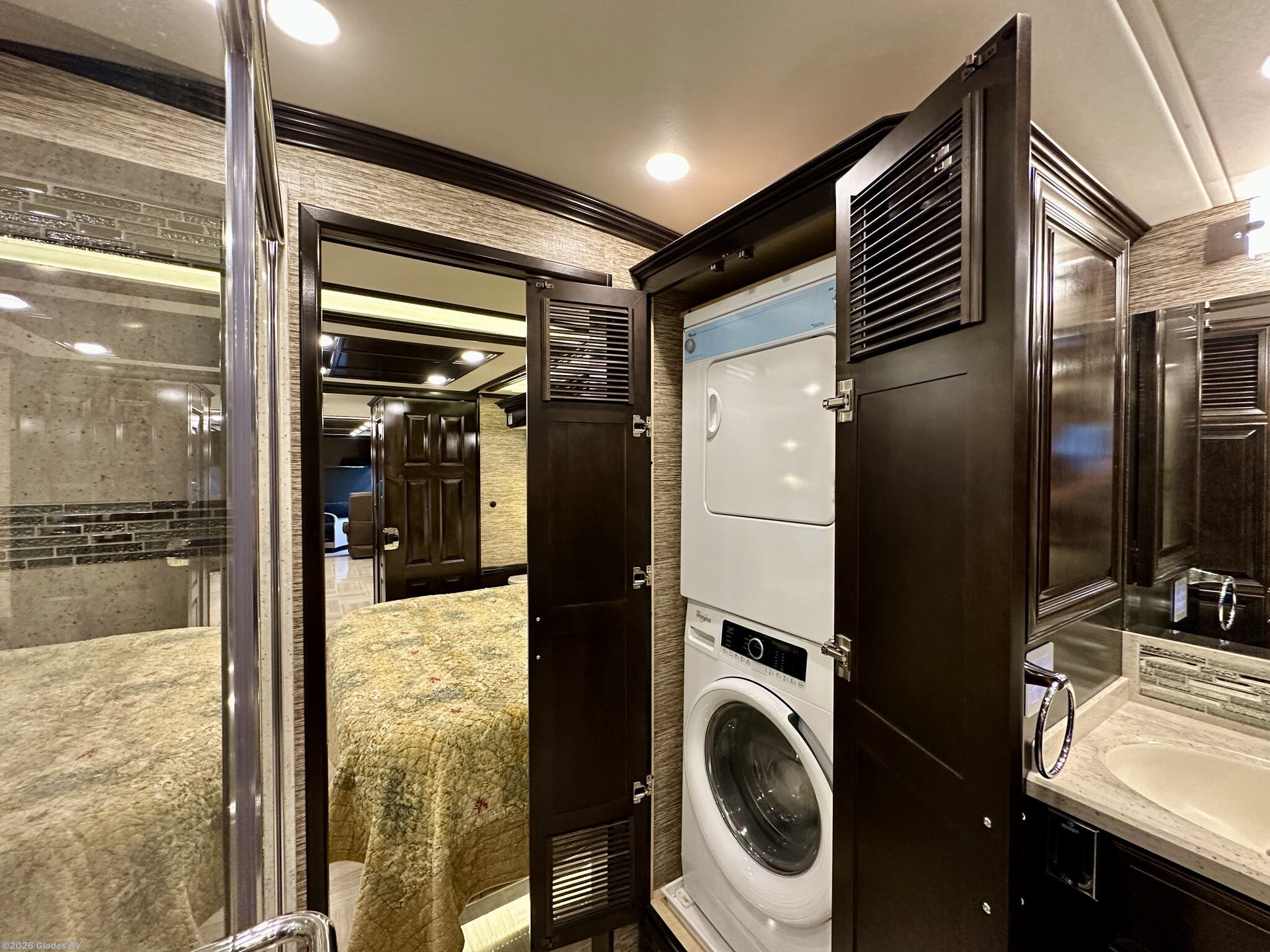 AUTO HYDRAULIC & AIR LEVELING, POWER INTEGRATED AWNINGS, SLIDE TRAYS IN BASEMENT, TELEVATOR TV, HYDRONIC HEATING, POWER DAY/NIGHT SHADES, STACKED WASHER & DRYER, HEATED FLOORS, KING BED, RESIDENTIAL REFRIGERATOR, OUTSIDE FREEZER, DISHWASHER, POWER WINDOW AWNINGS AND MUCH MORE...