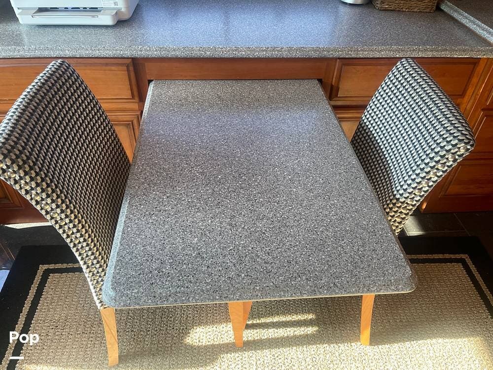 Check out the versatile dining area. There is a separate table and two upholstered chairs with a convenient "hideaway" table for multi-purpose use.