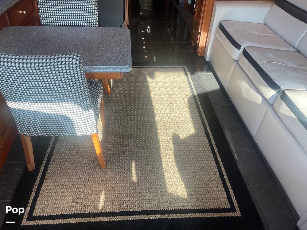 Step into the main living space and note the light color palette with rich white leather furnishings and caramel-glazed cherry case goods (option)