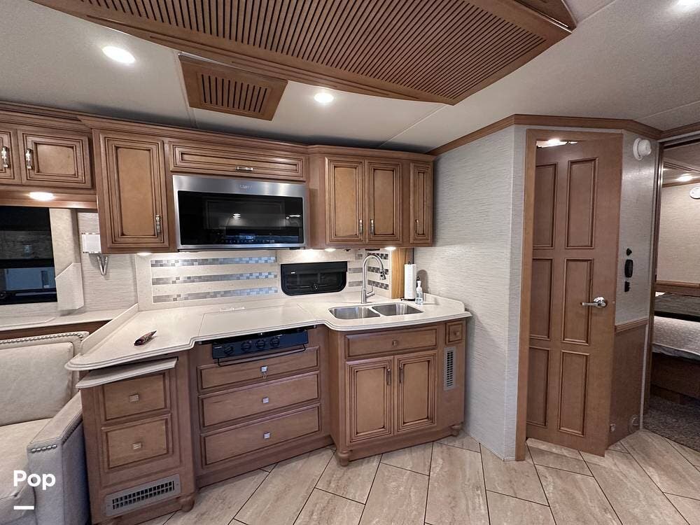 Equipped with a state-of-the-art kitchen, including a convection microwave, three-burner cooktop. Preparing gourmet meals on the go has never been easier. Plus, the luxurious bedroom and spa-inspired bathroom will make you feel like you're in a five-star hotel, even in the most remote destinations.