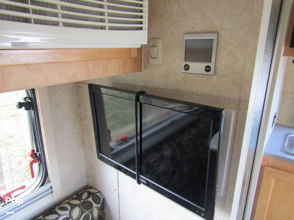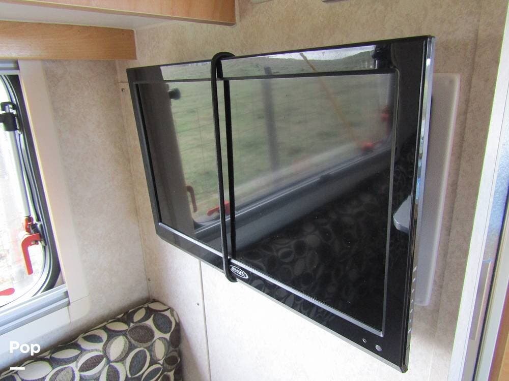 This 2018 T@B 320 S Boondock package has a heavy-duty pitched axle and off-road tires for more ground clearance, and it is equipped with a 5,000 BTU A/C for cooling and a 20,000 BTU, an Alde Central Heat and Water Heating System, as well as an AM/FM Stereo with Bluetooth, a CD and DVD player, and a flat-panel TV.