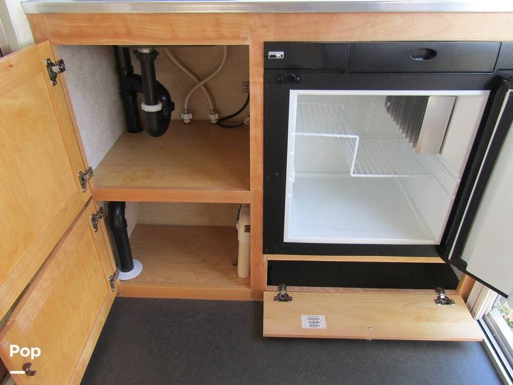 There are also plenty of cabinets for storage, including under-bed storage accessible from the outside, an external black-water hose holder, external storage with additional front bins installed, a chrome diamond-plate tub as the propane tank and battery locker, and a rear luggage rack.