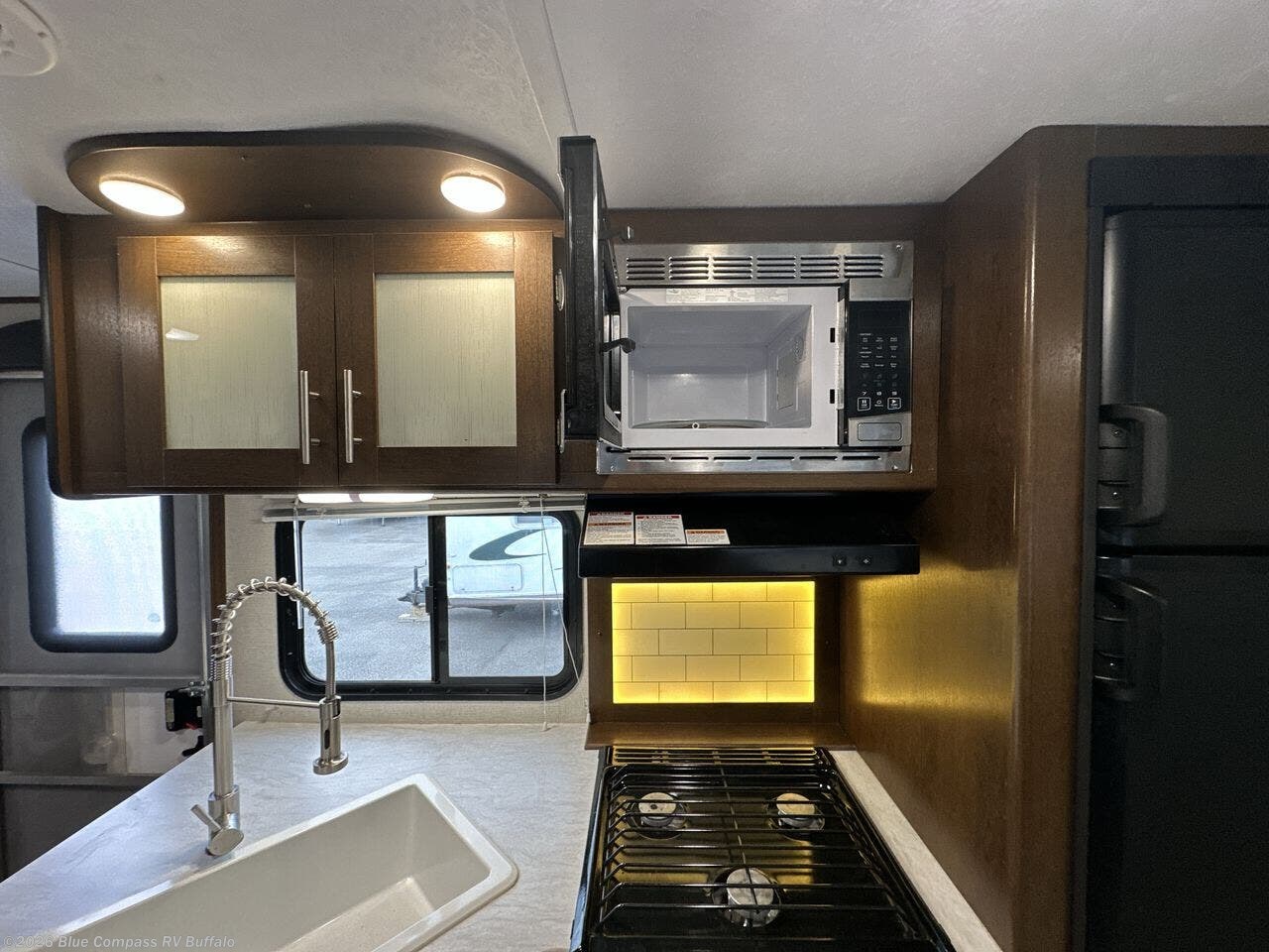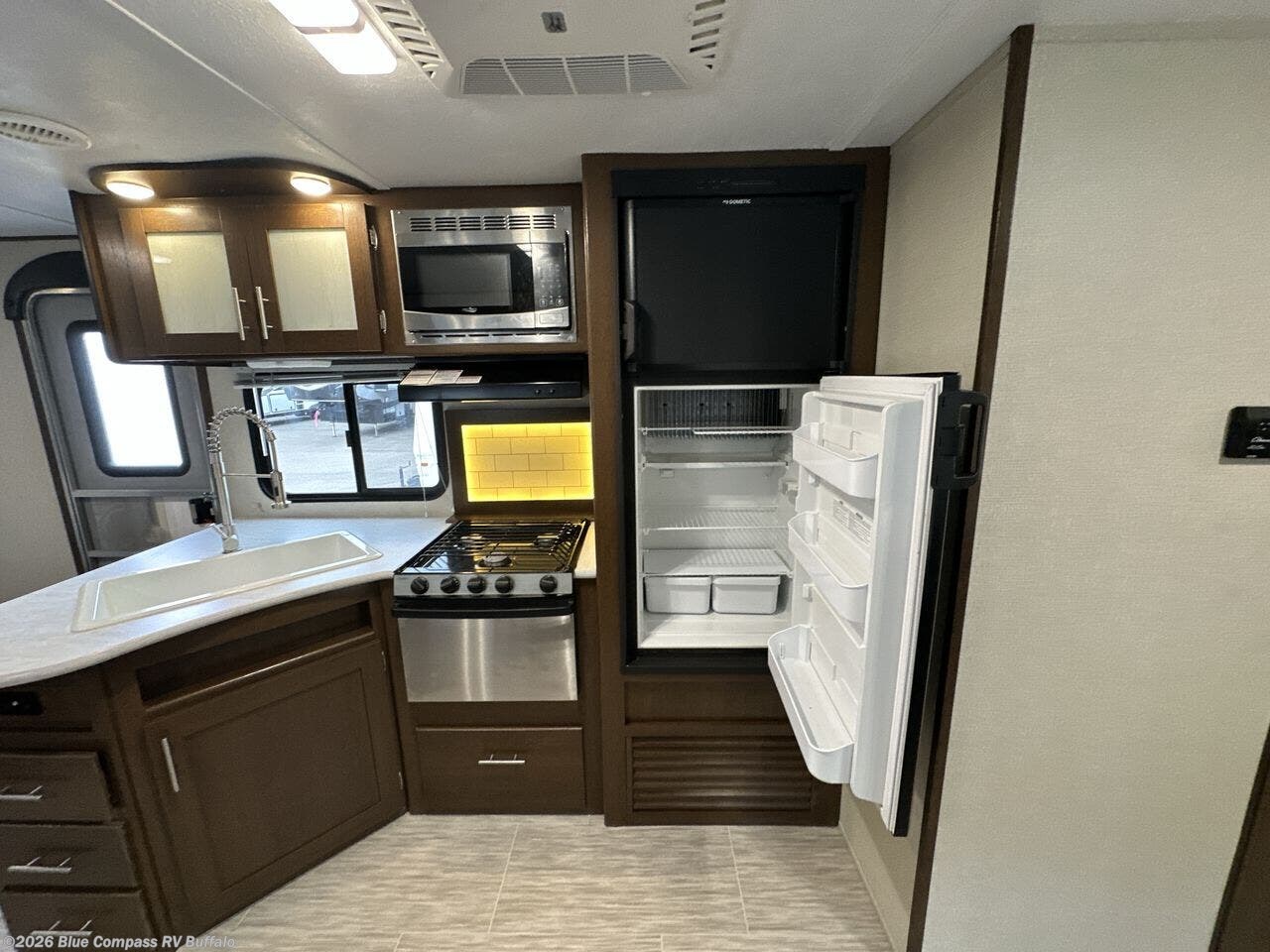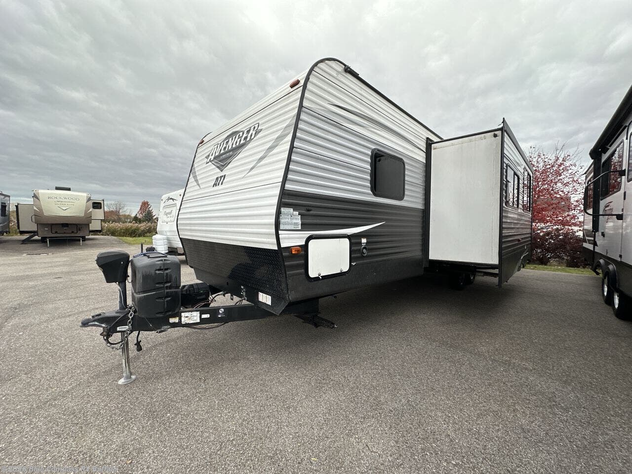 With any Avenger ATI you will feel secure knowing the travel trailer is made with exclusive EVERLAST construction. The Dexter axles provide safety and peace-of-mind while traveling to your favorite locations. Once you are set up you will appreciate the exterior shower providing an extra place to clean off, the radius entrance door with a window, and the LED lit power awning while relaxing outside with family and friends. The mandatory Advantage package provides additional features that you will find useful such as a restaurant style kitchen faucet, LED interior lighting, and a large double door refrigerator. It's time to take your next journey in an Avenger ATI travel trailer by Prime Time RV!
