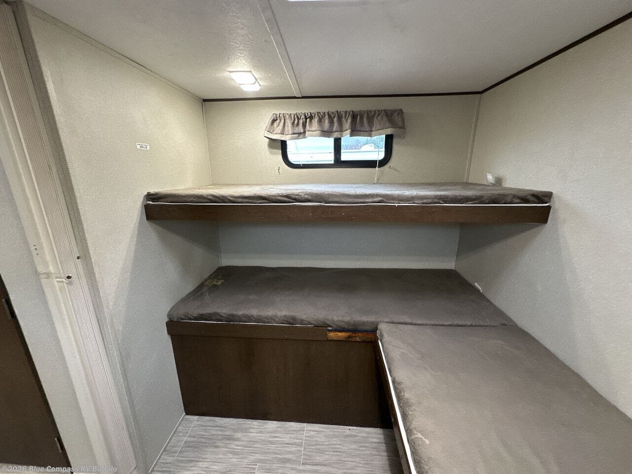 Your kids or grandkids will enjoy having a room all to themselves in the rear bunkhouse. This single slide out Prime Time RV Avenger ATI 29RBS features triple bunk beds, and J-cube mats in the bunkhouse, plus a private front bedroom for the parents. When you are needing to relax inside be sure to watch your favorite shows on the 50" TV. The outdoor kitchen offers a second location to cook and serve meals to your family and friends, and you will find plenty of storage inside and outside. Load up and head out today!