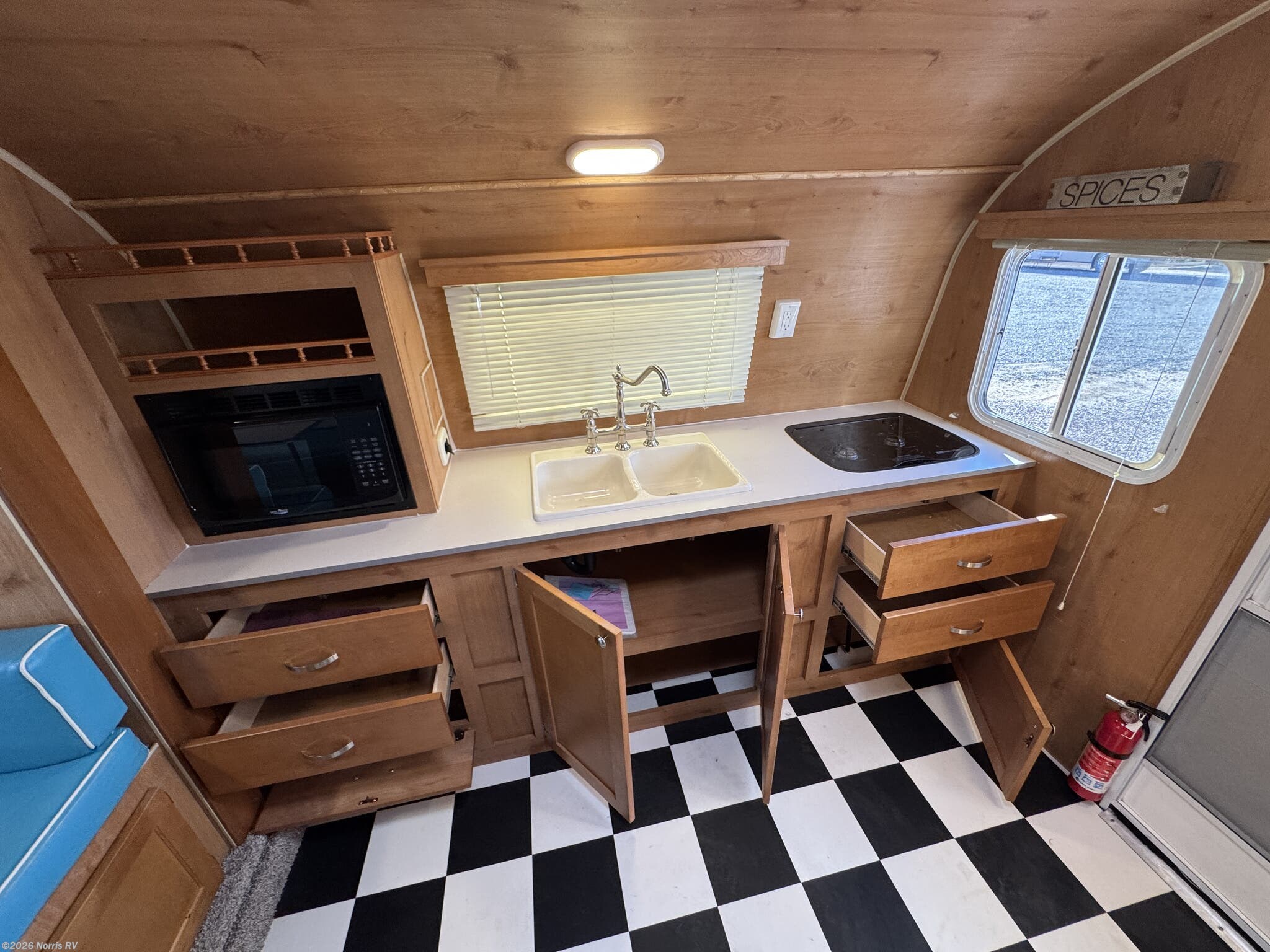 Riverside RV Retro 2018 Travel Trailer 176S — Front Kitchen & Rear Bedroom