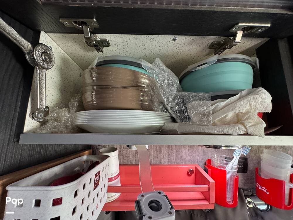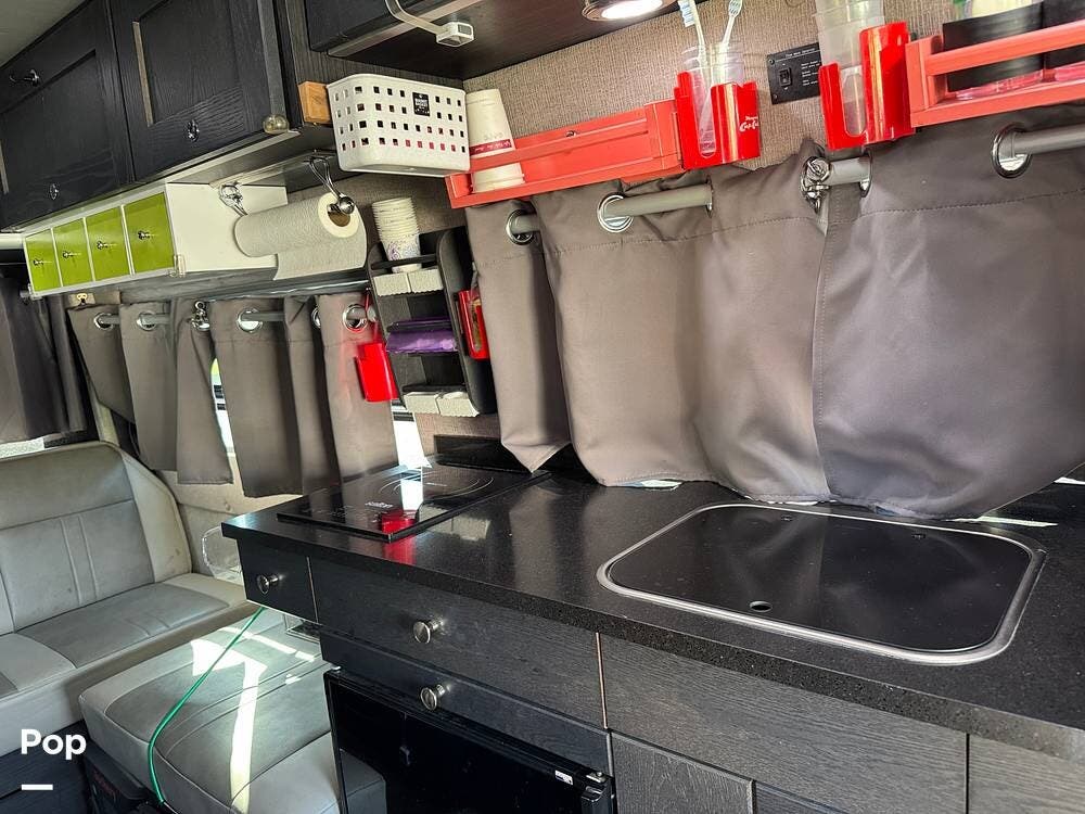 The modern kitchen makes cooking on the road a breeze with a convection microwave, one-burner induction cooktop, and 3.1 cu ft refrigerator--everything you need to enjoy meals wherever the road takes you.