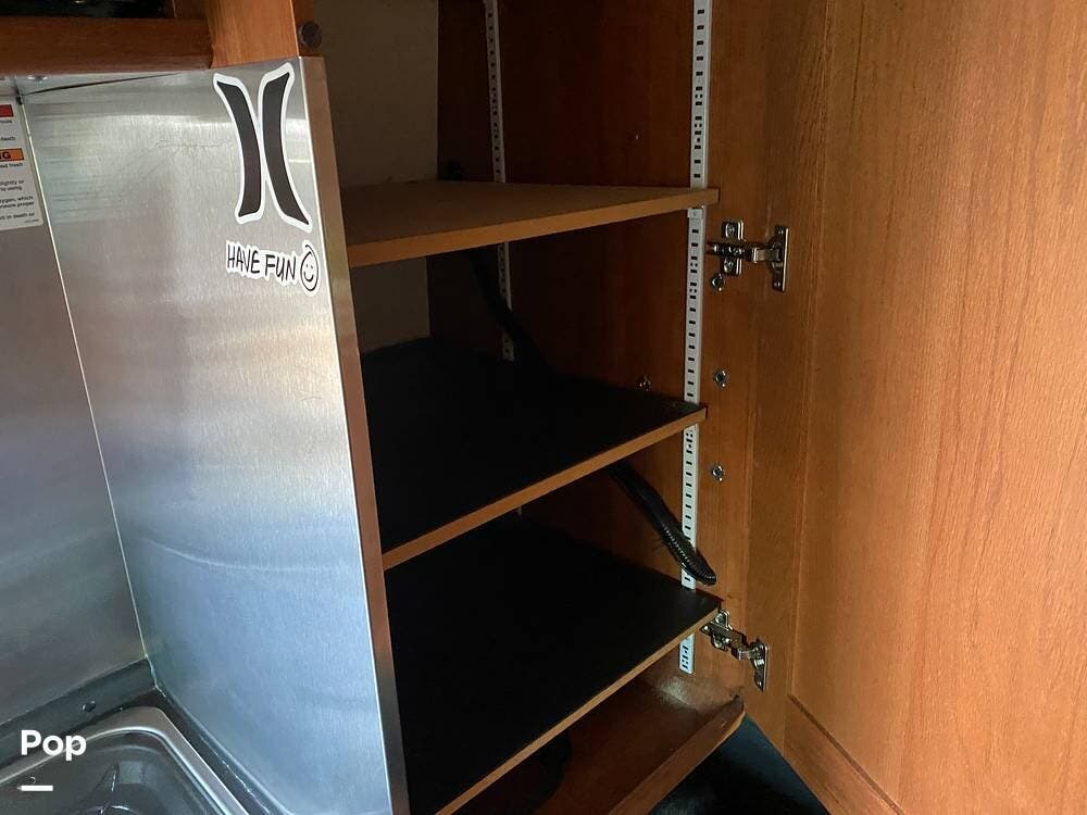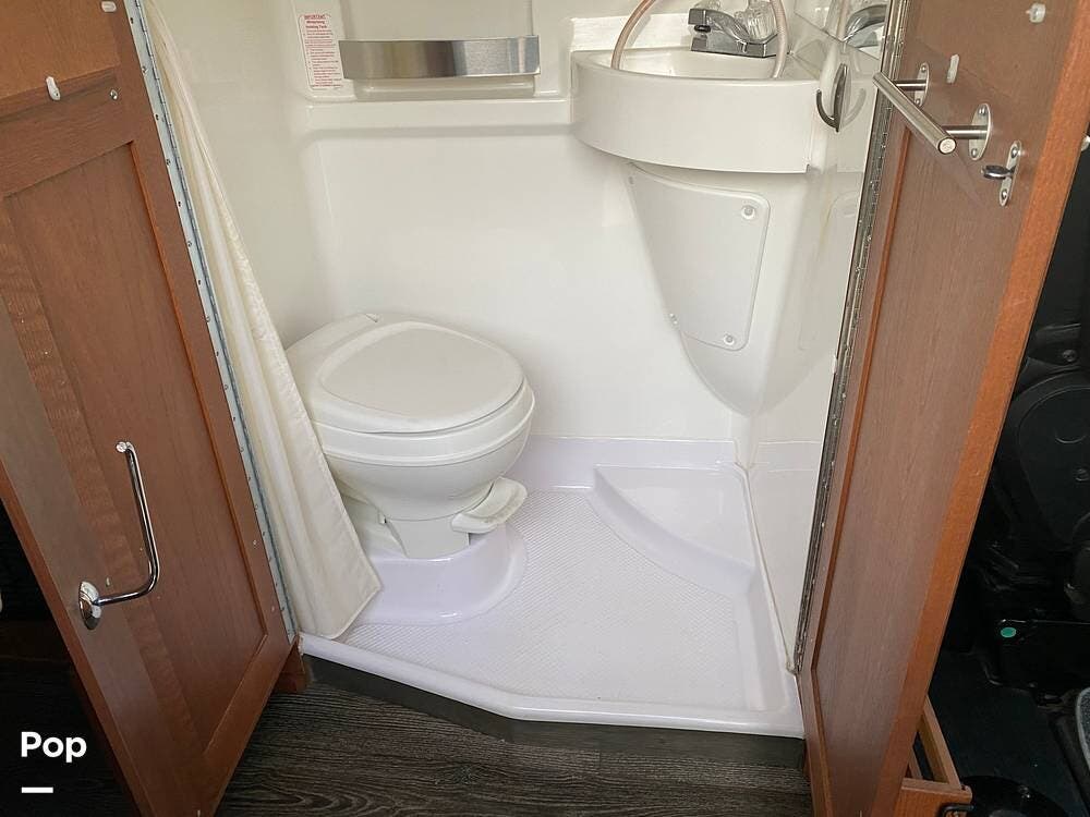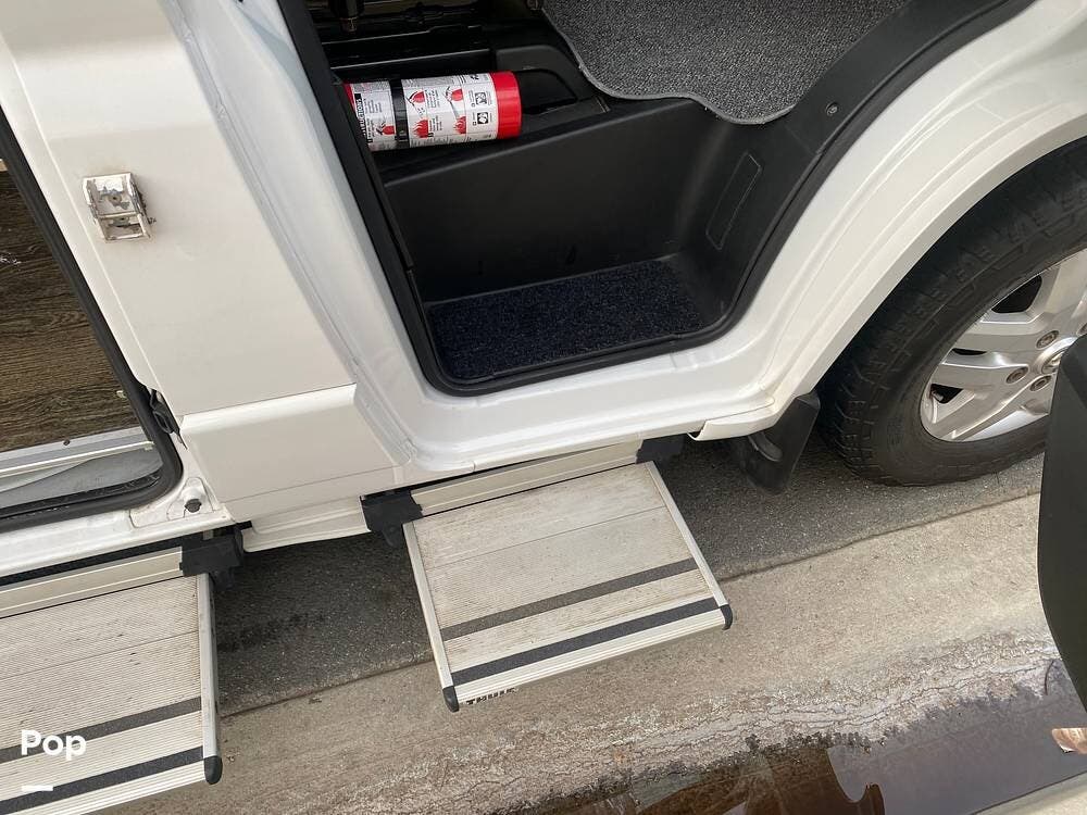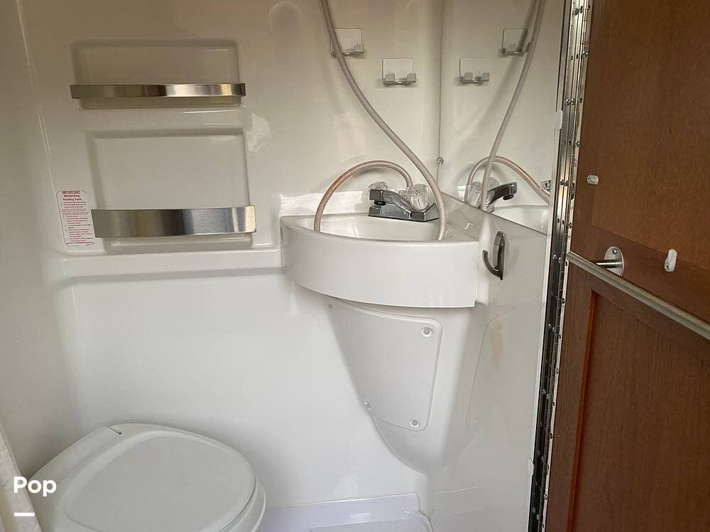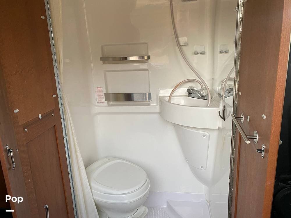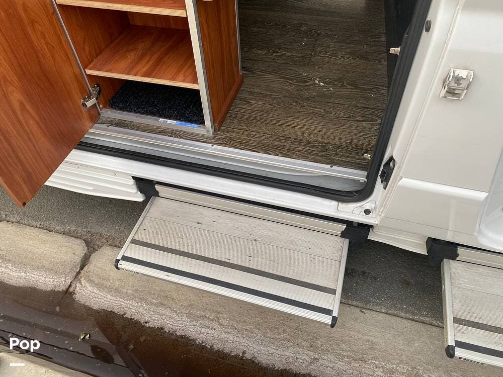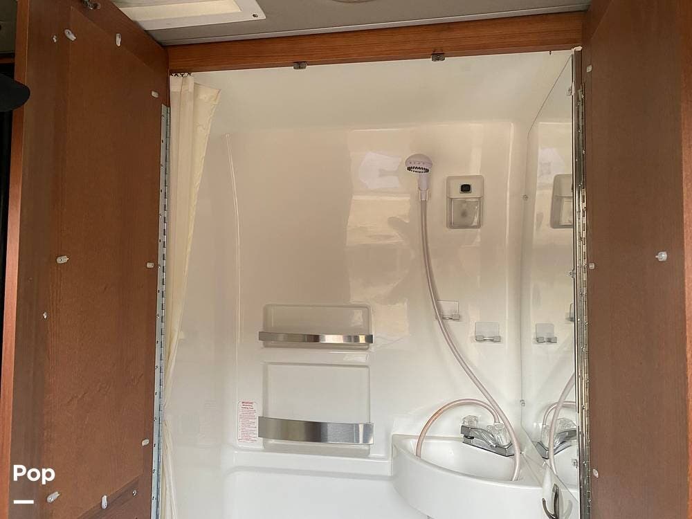 Outside, there is a nice large awning for shade, and the entry steps are automatic. Inside, the well-equipped kitchen makes cooking a breeze, and the RV has a bathroom with a shower.
