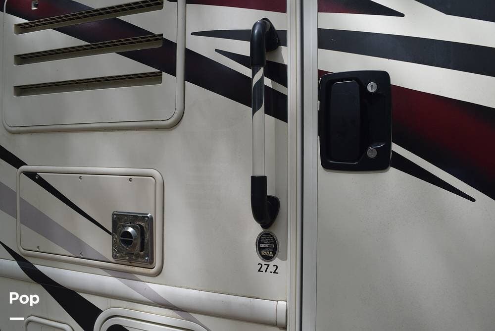 Step inside and enjoy a thoughtfully designed interior that maximizes space and comfort. The 27.2 floor plan features a spacious living area with comfortable seating, a fully equipped kitchen, and a cozy sleeping setup perfect for family trips or couples exploring the open road.