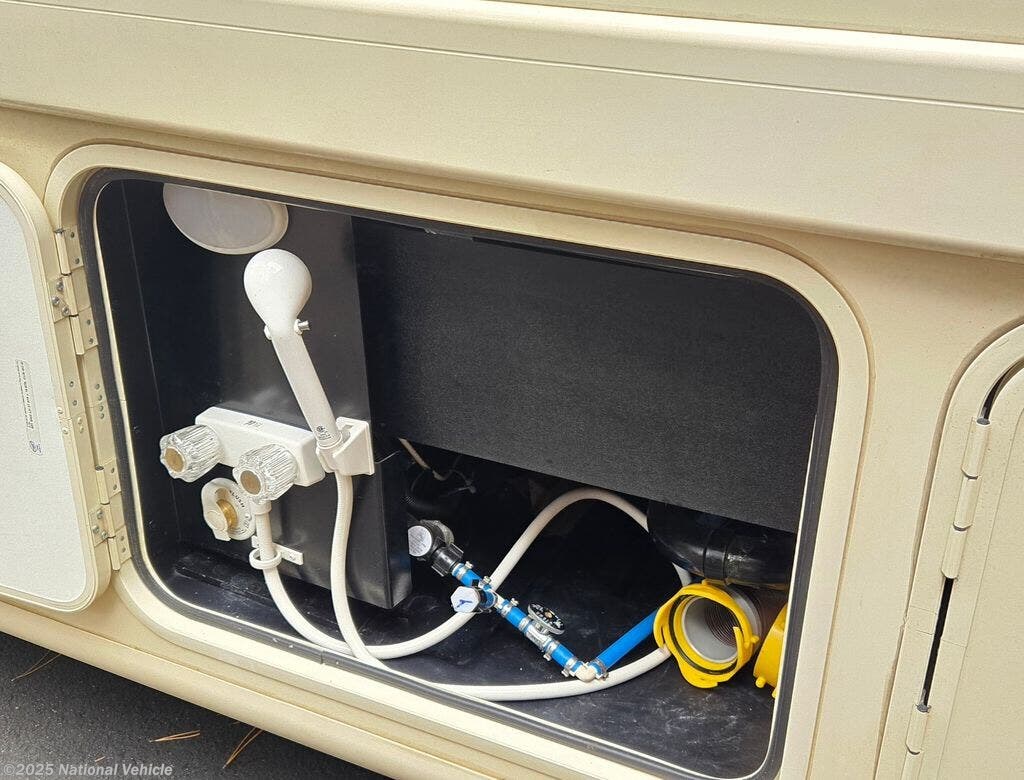 Convenience: Ladder for roof access, outside shower, and a black tank flush system
