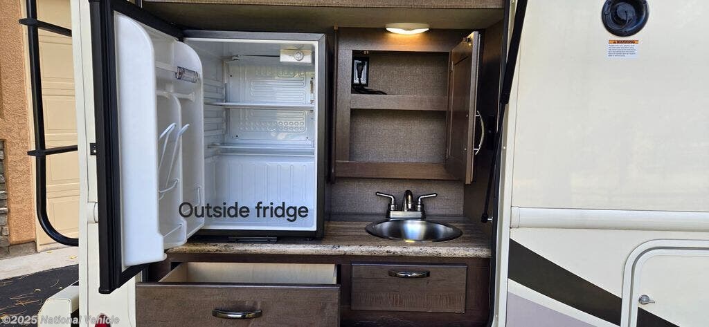 Exterior Kitchen: Refrigerator, sink, and an exterior LP connection