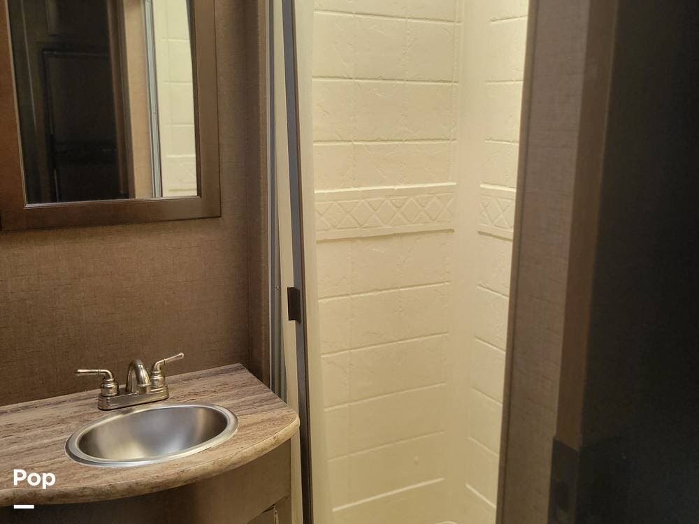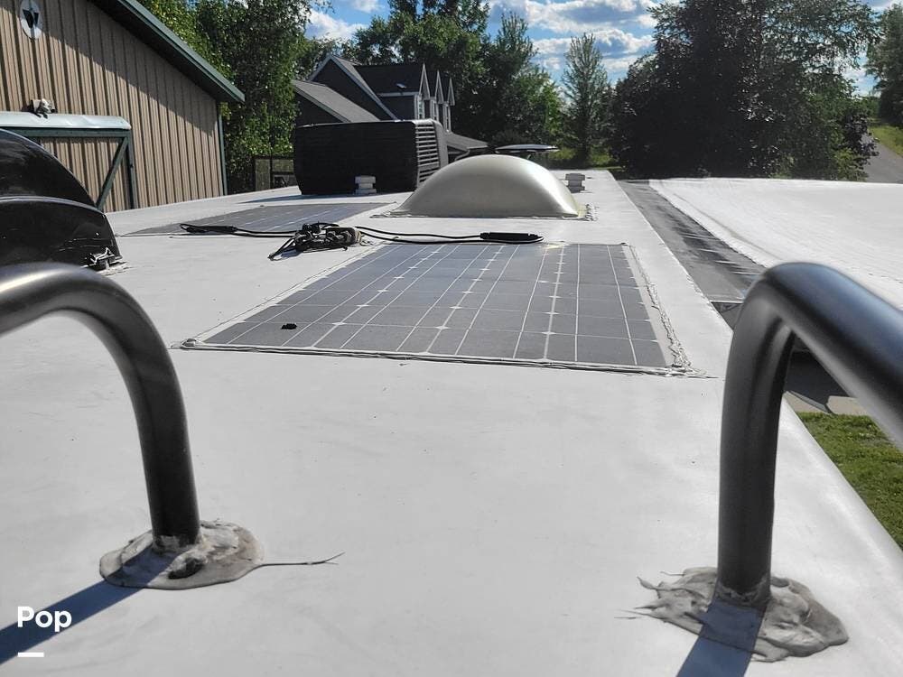 Outside, you'll find an exterior kitchen complete with a sink and refrigerator, a 32" outdoor TV, a power awning with LED lighting, and plenty of basement storage for all your gear.