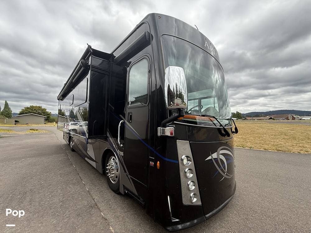 This 2018 Aria 3401 is powered by a Cummins ISB 6.7L engine delivering 360 hp. This diesel pusher has low mileage and is road-ready!