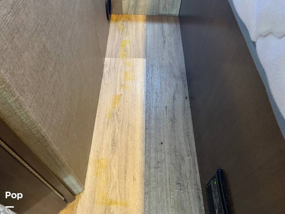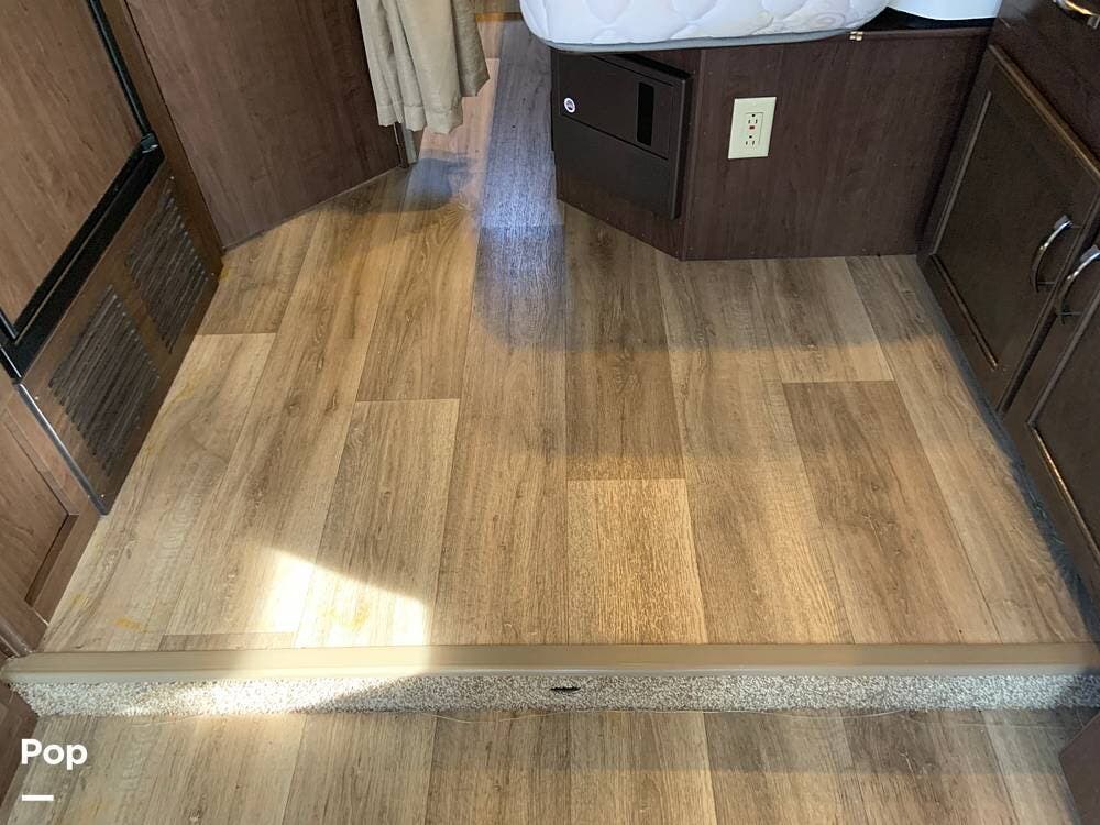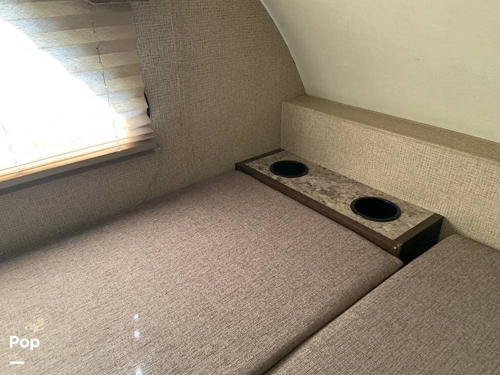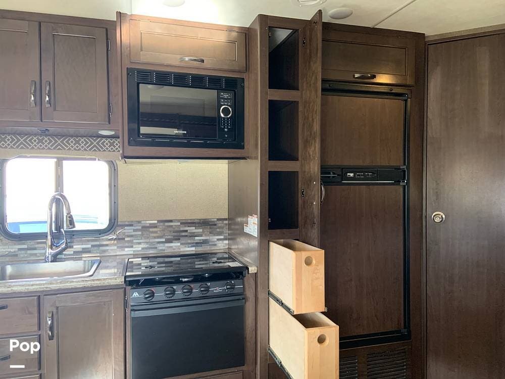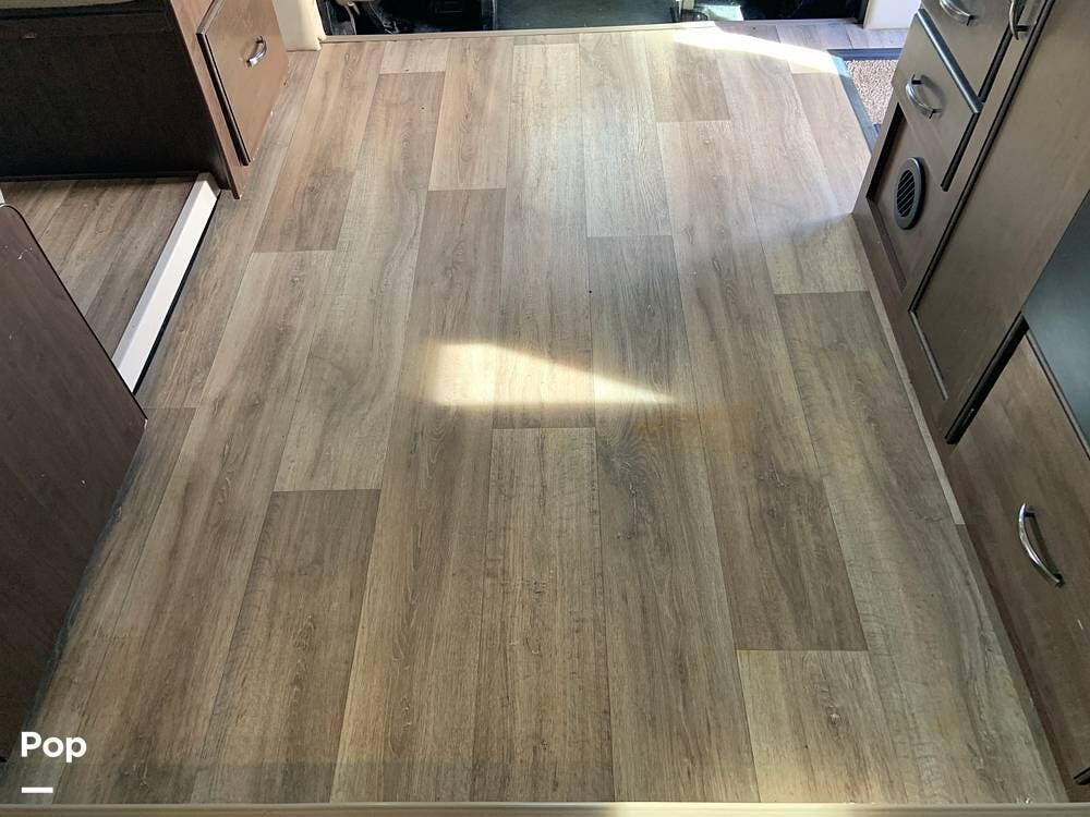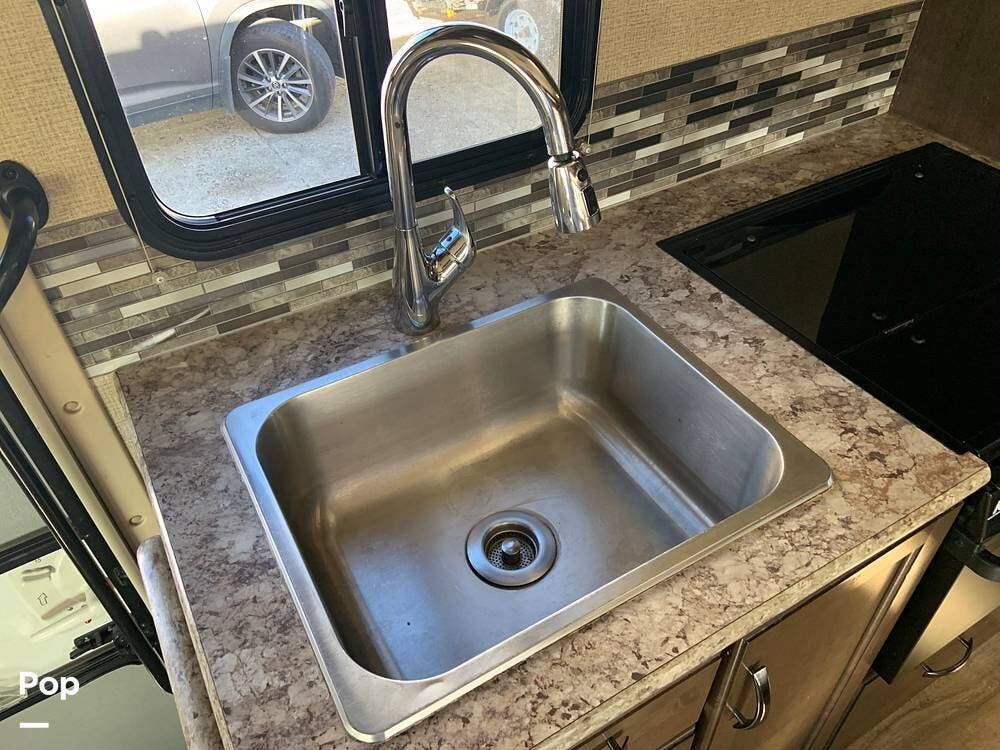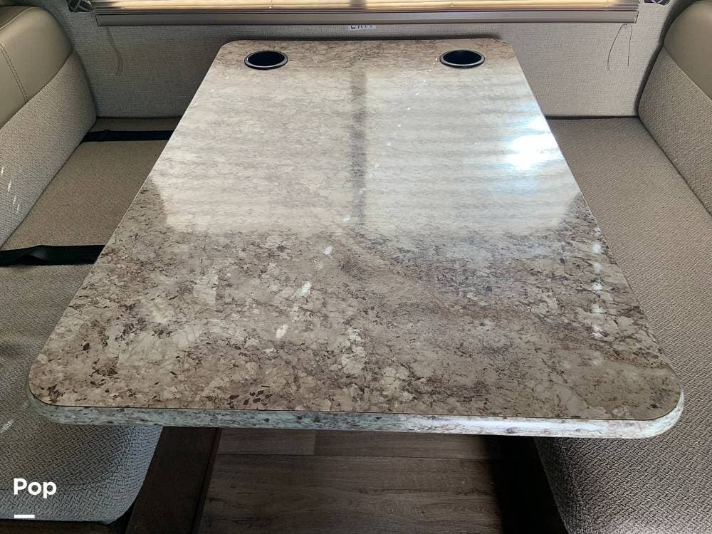 The coach has one large slide and a roomy interior given it's size at just under 25 feet. It sleeps six and offers a queen bed, cabover bunk and convertible dinette.