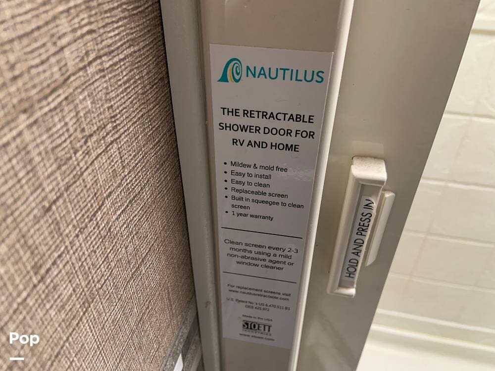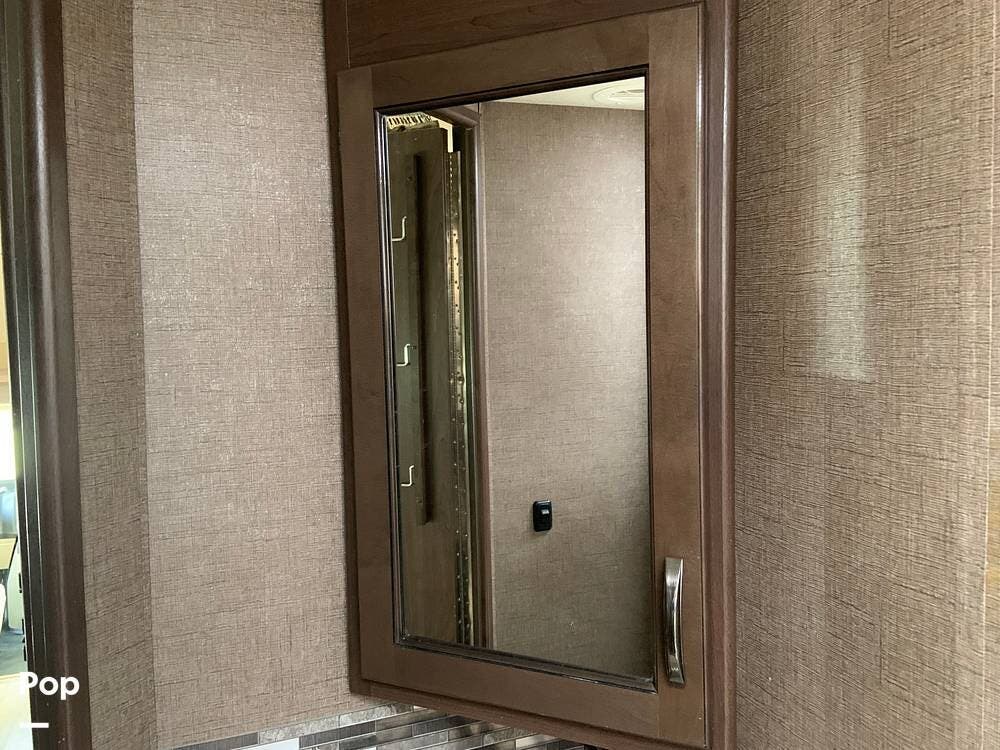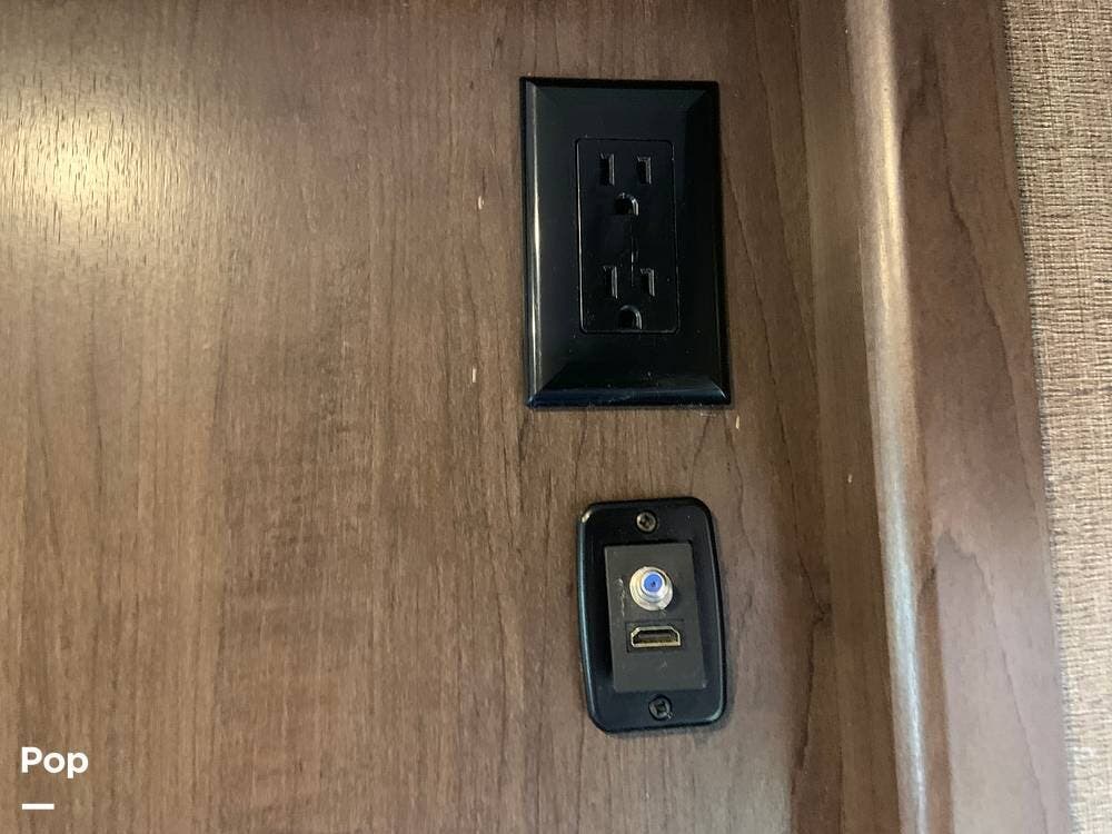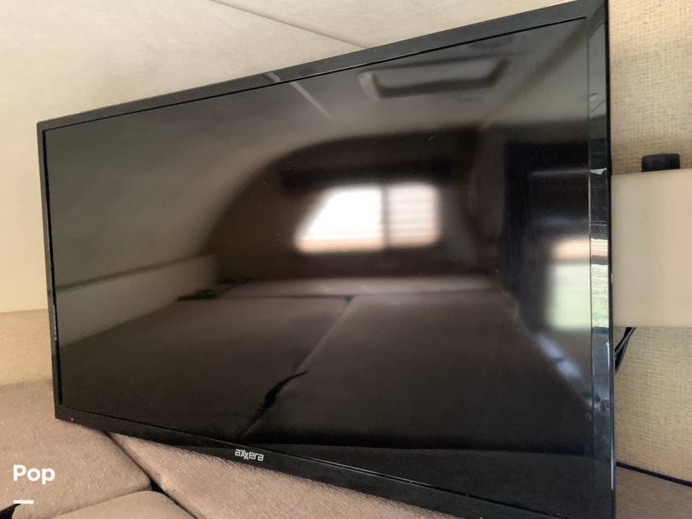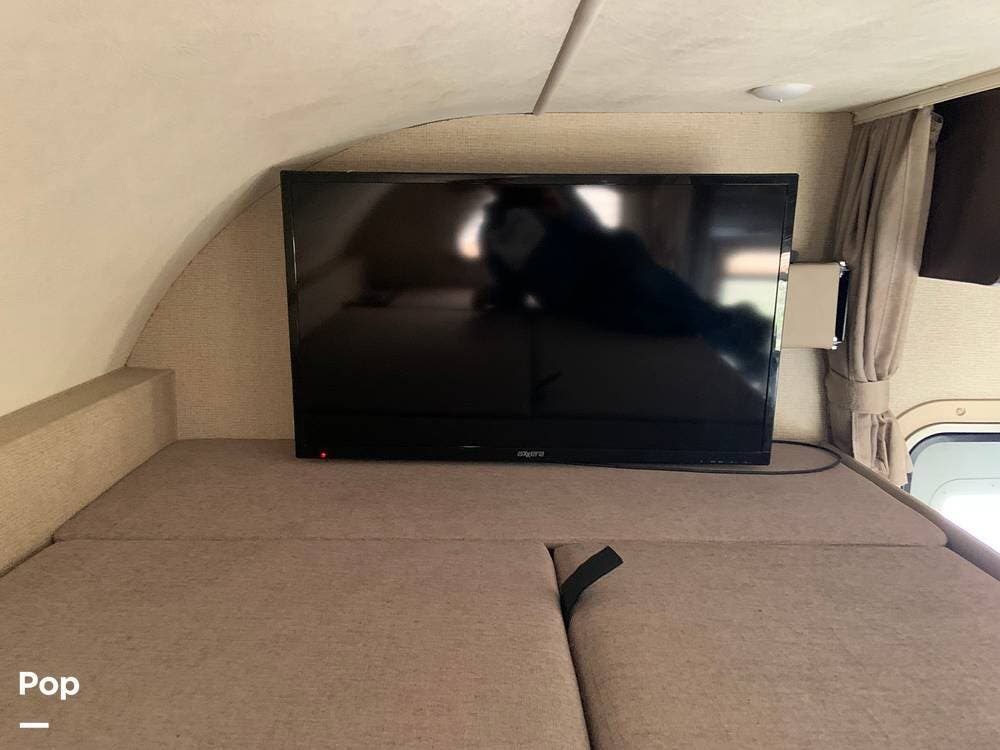 Up front, the coach is equipped with the 54" x 96" cabover bunk that features a 40" LED TV with swivel.
