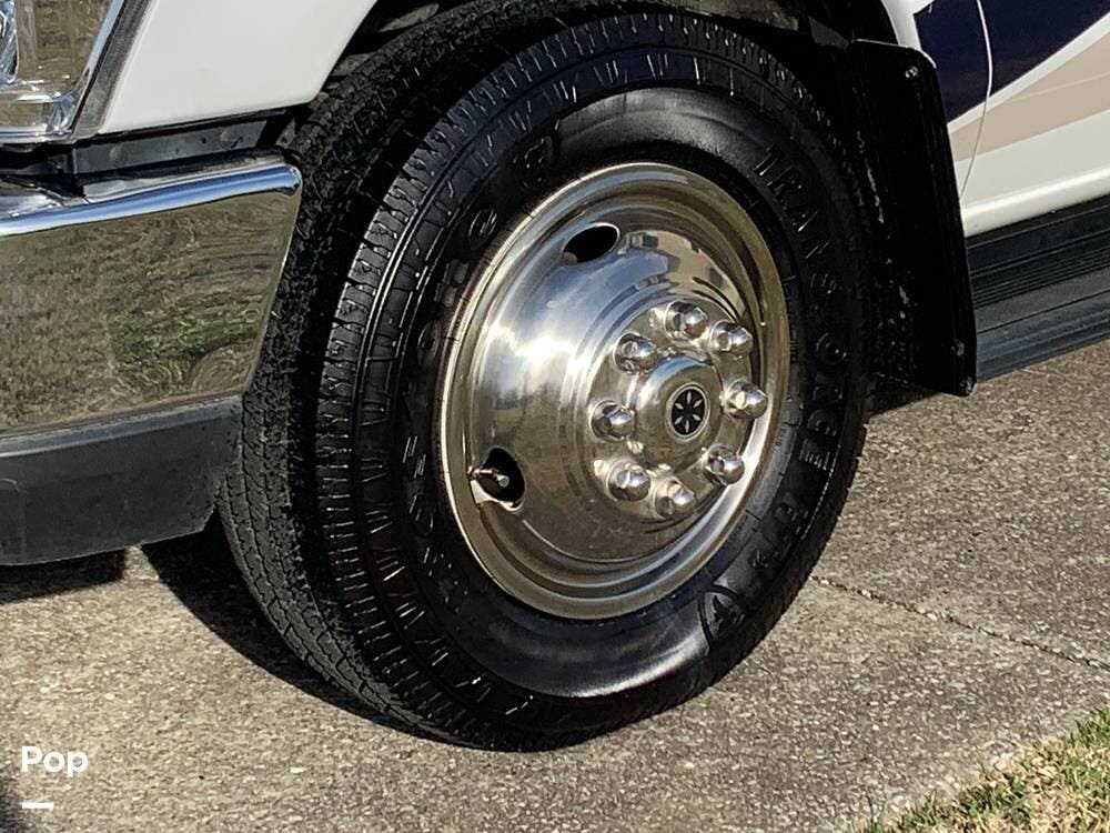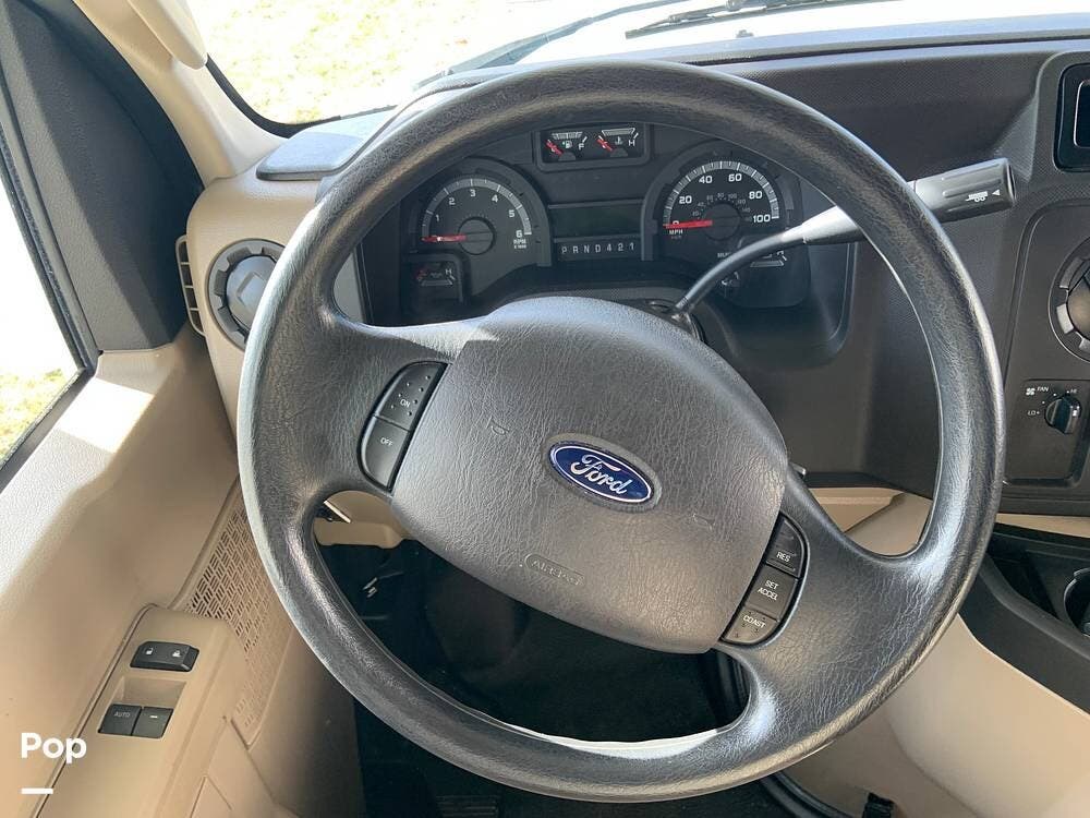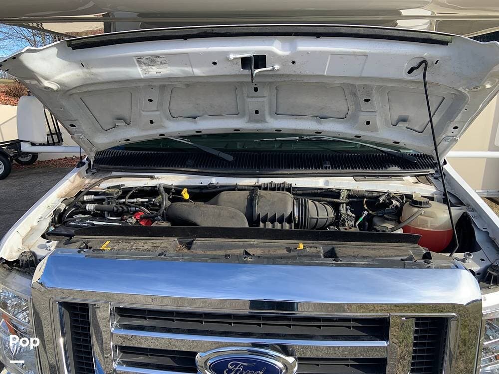 The coach is built on a Ford E350 Chassis and powered by a 305 HP Triton V10 engine.