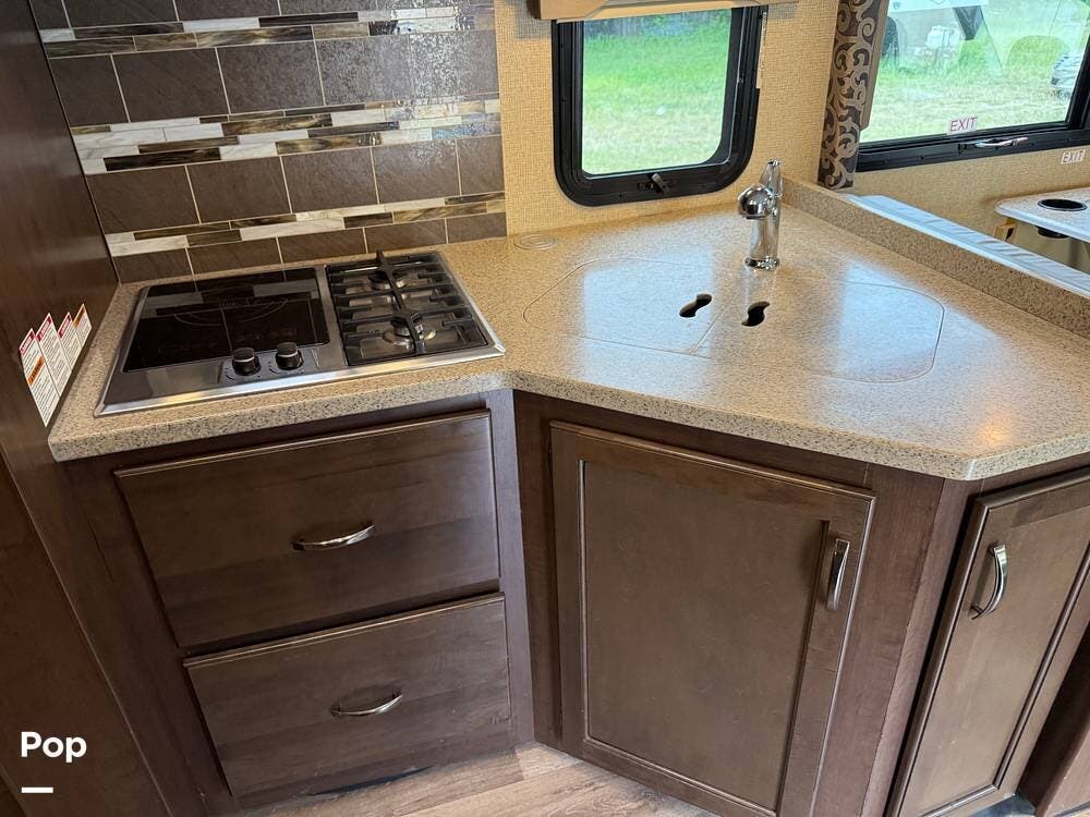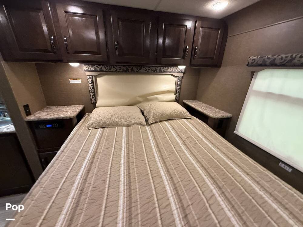 With a large super slideout, the floorplan opens up to provide you with ample space, and the over-cab bunk offers excellent sleeping options.