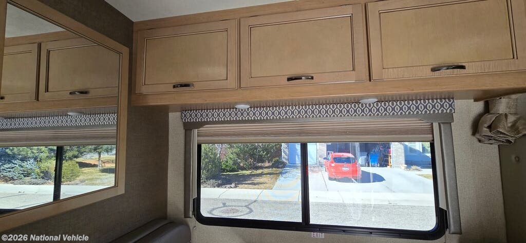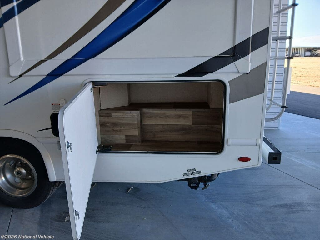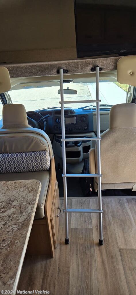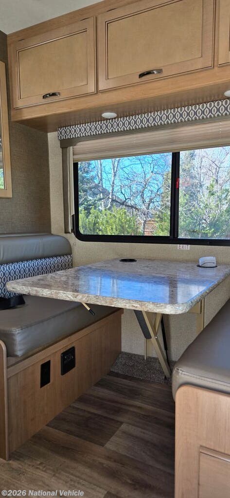 Outside, this motorhome showcases a sleek, aerodynamic profile that?s both stylish and fuel-efficient. Large windows brighten the interior, while exterior highlights include dual storage compartments, roof access ladder, and a power awning?ideal for creating a shaded outdoor living area. The Class C design makes driving and maneuvering easy, whether you?re navigating highways or scenic campgrounds.