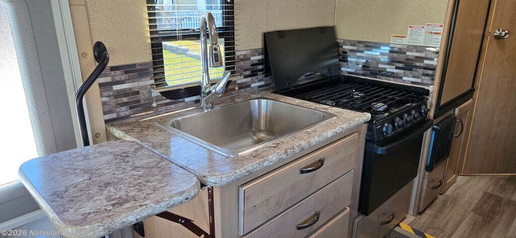 Inside, you?ll discover a warm, inviting interior designed for comfort and versatility. The spacious dinette converts easily into an additional sleeping area, while the over-the-cab bunk provides extra room for family or guests. The well-appointed kitchen features a sink, oven, three-burner cooktop, refrigerator, freezer, and ample cabinetry?perfect for preparing meals on the road. A private bathroom with shower ensures convenience wherever your journey takes you, and generous storage throughout keeps everything neatly organized.