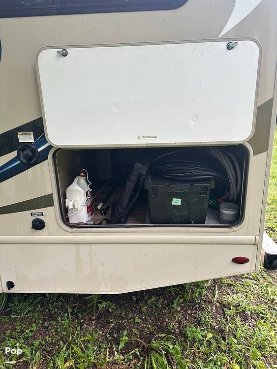 Step outside and you'll find even more to love--an electric awning for shade on sunny days, an outdoor TV for entertainment under the stars, and generous exterior storage to carry all your gear. Built on a Ford chassis and powered by a dependable engine, this RV handles smoothly whether you're hitting the interstate or winding through scenic backroads.