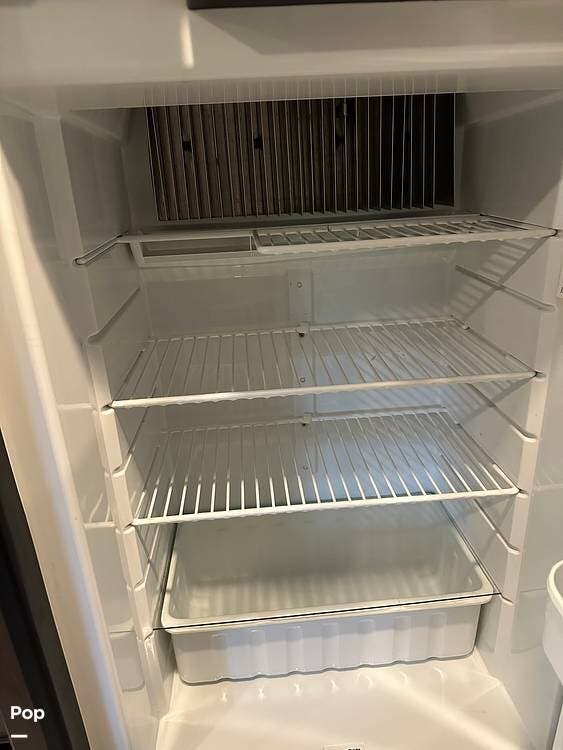 The fully equipped kitchen has everything you need to cook on the go, including a refrigerator/freezer, stove, and deep sink.