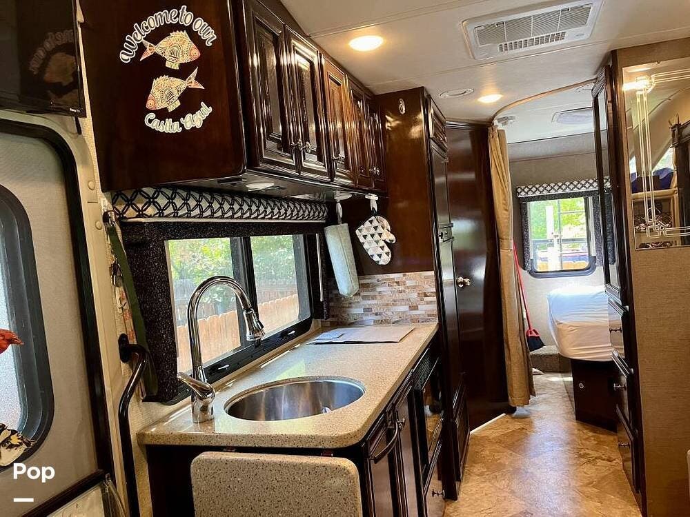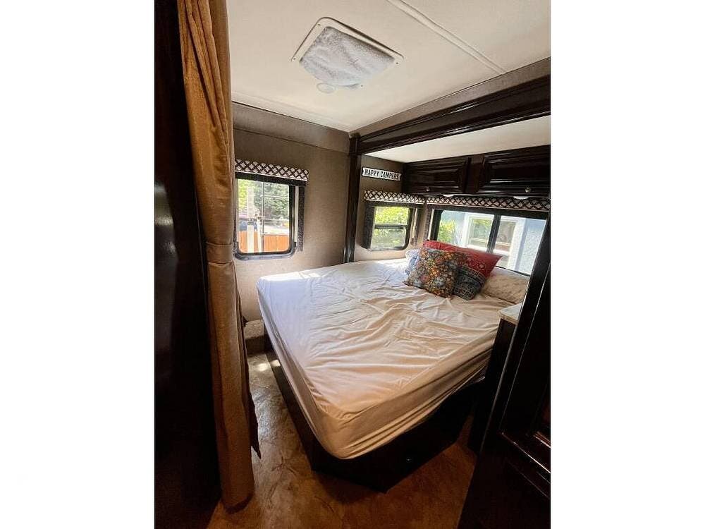 Additional highlights include a power patio awning with LED lighting, backup camera, 3.6kW Onan LP generator, a custom bicycle/kayak/paddleboard rack and plenty of exterior storage for your gear.