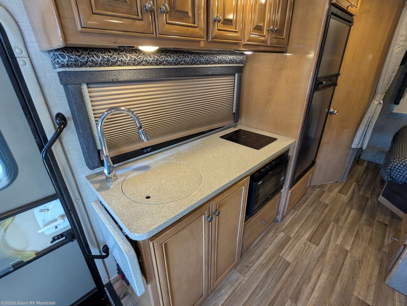 - Kitchen & Bath: Induction cooktop, 6 cu.ft. fridge, microwave, rear corner bath