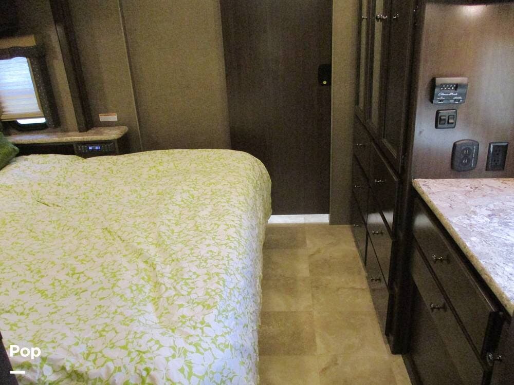 The Suite on this coach is amazing! Relax on the walk around king bed and enjoy the flat screen TV. Across is the wardrobe and dresser storage.