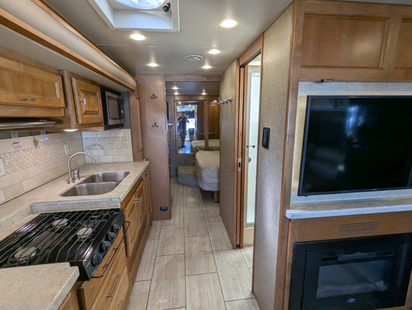 Set out on a family journey with the 2018 Tiffin Allegro Breeze 31 BR Class A RV at Giant RV in California! Ideal for groups, this compact diesel motorhome features a rear queen bedroom for restful sleep, a bunk over cab for extra guests, and three slide-outs for spacious living, sleeping up to 6. The kitchen boasts a 7 cu. ft. fridge to keep food fresh, a 3-burner cooktop for tasty meals, and a convection microwave for quick snacks. Enjoy a 16’ power awning for shaded relaxation. Equipped with dual 15,000 BTU A/Cs for cool comfort and a 20,000 BTU furnace for warmth.